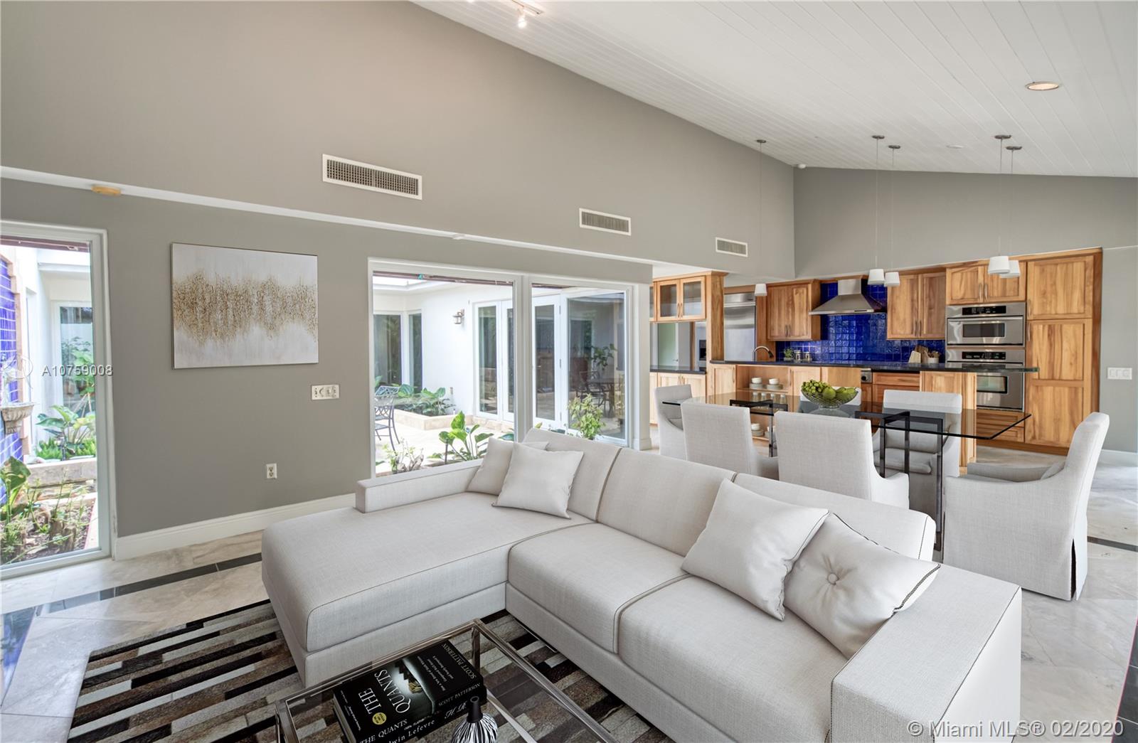 Gorgeous Coral Gables home with newly installed impact windows on an oversized 14,263 SF lot. This residence offers a spacious, light-filled floor plan with an open roof courtyard, oversized master bedroom with direct access to the pool area and three additional bedrooms with en-suite bathrooms. The kitchen offers a chef style gas range, wine cooler and extra storage custom made cabinetry. Huge backyard with oversized pool, which feels like a tropical oasis!!
