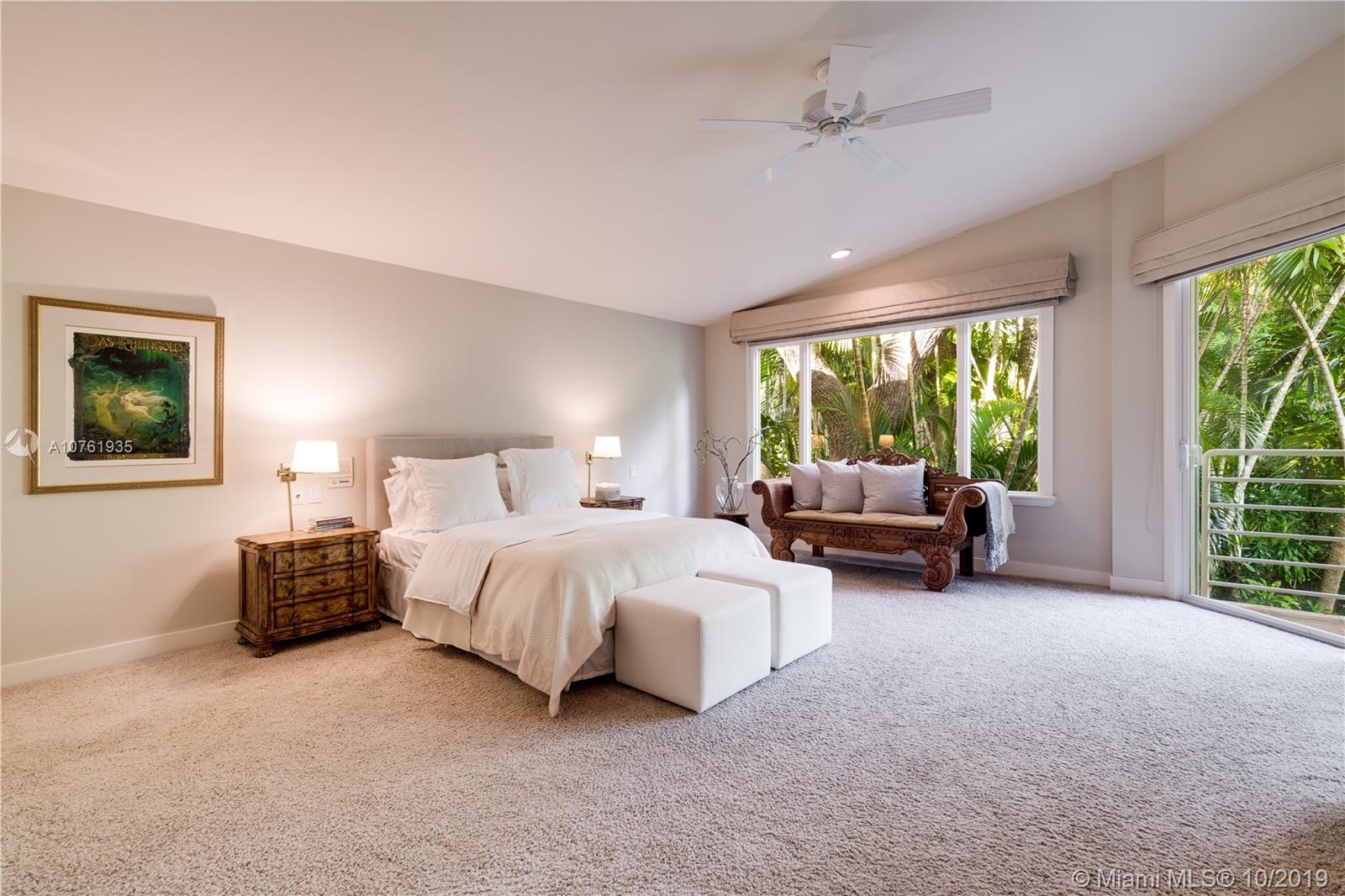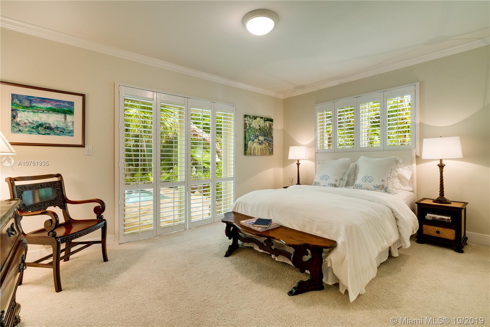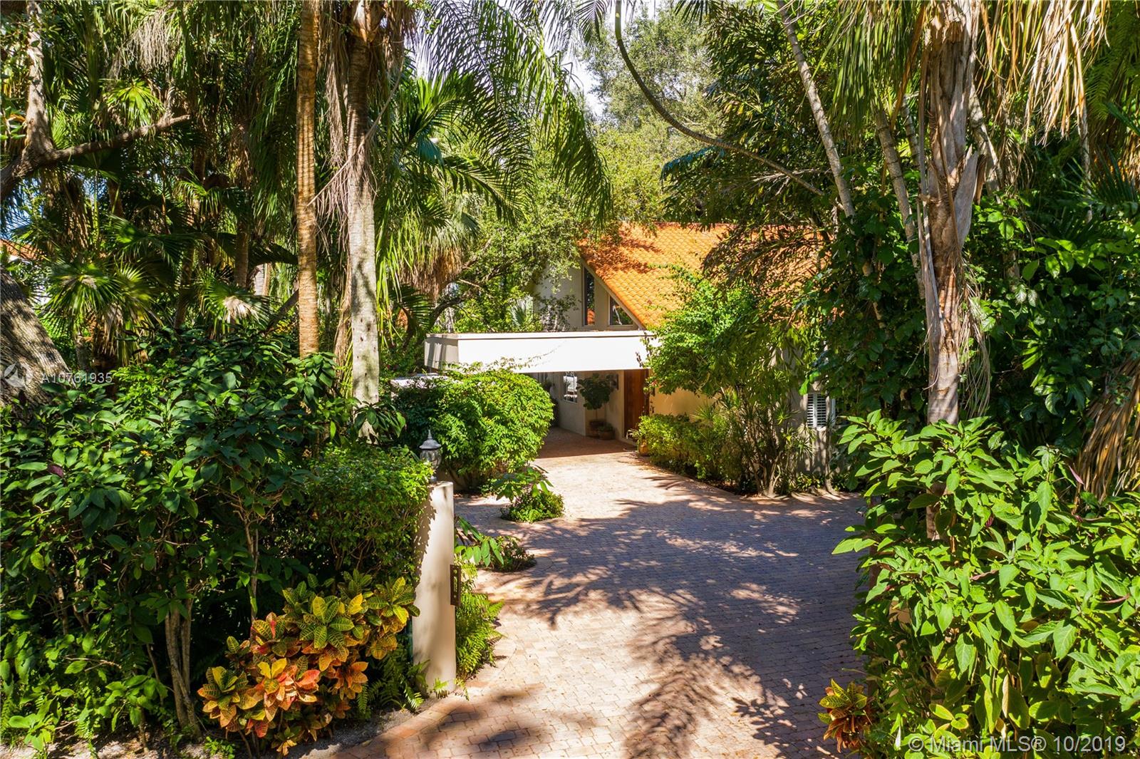 The allure of Coconut Grove is prevalent in this stunning home on one of South Coconut Grove’s most magical streets. A gated entry leads to a serene setting filled with an abundance of greenery, orchids, bougainvillea and the gentle sound of a waterfall and koi pond. Step inside and be greeted by dramatic walls of glass overlooking a tropical paradise in this exceptional residence. A gorgeous cook’s kitchen with custom cabinetry, Sub Zero & Miele appliances and tons of storage, wraps around to a wet bar and cozy, inviting family room. Besides the 3 bedrooms, there is a handsome library with gorgeous built-ins and a small bonus room adjoining the kitchen. The balcony off the oversized, second-floor master overlooks the lap pool & garden,your own personal Shangri-La. A Very Special Home.