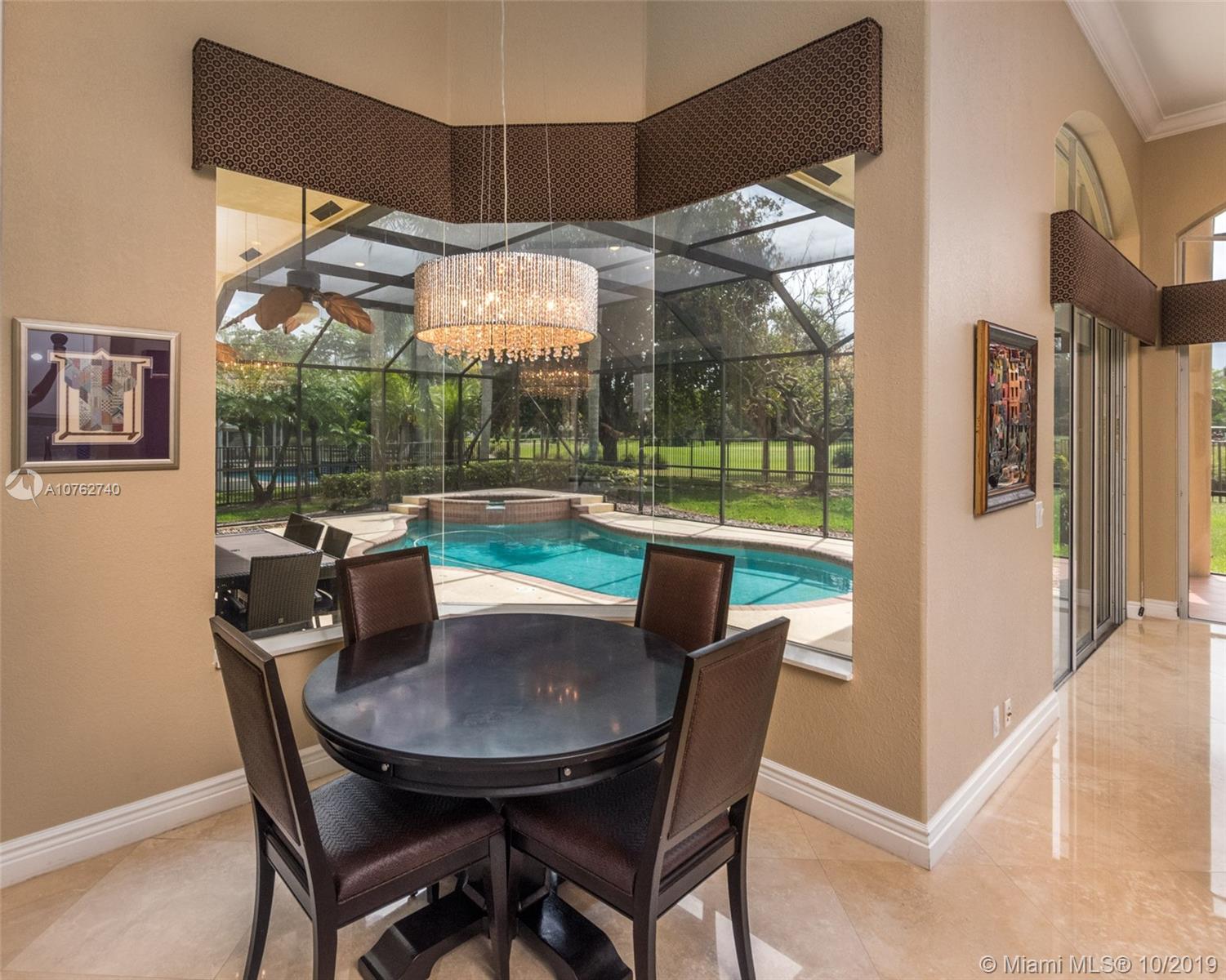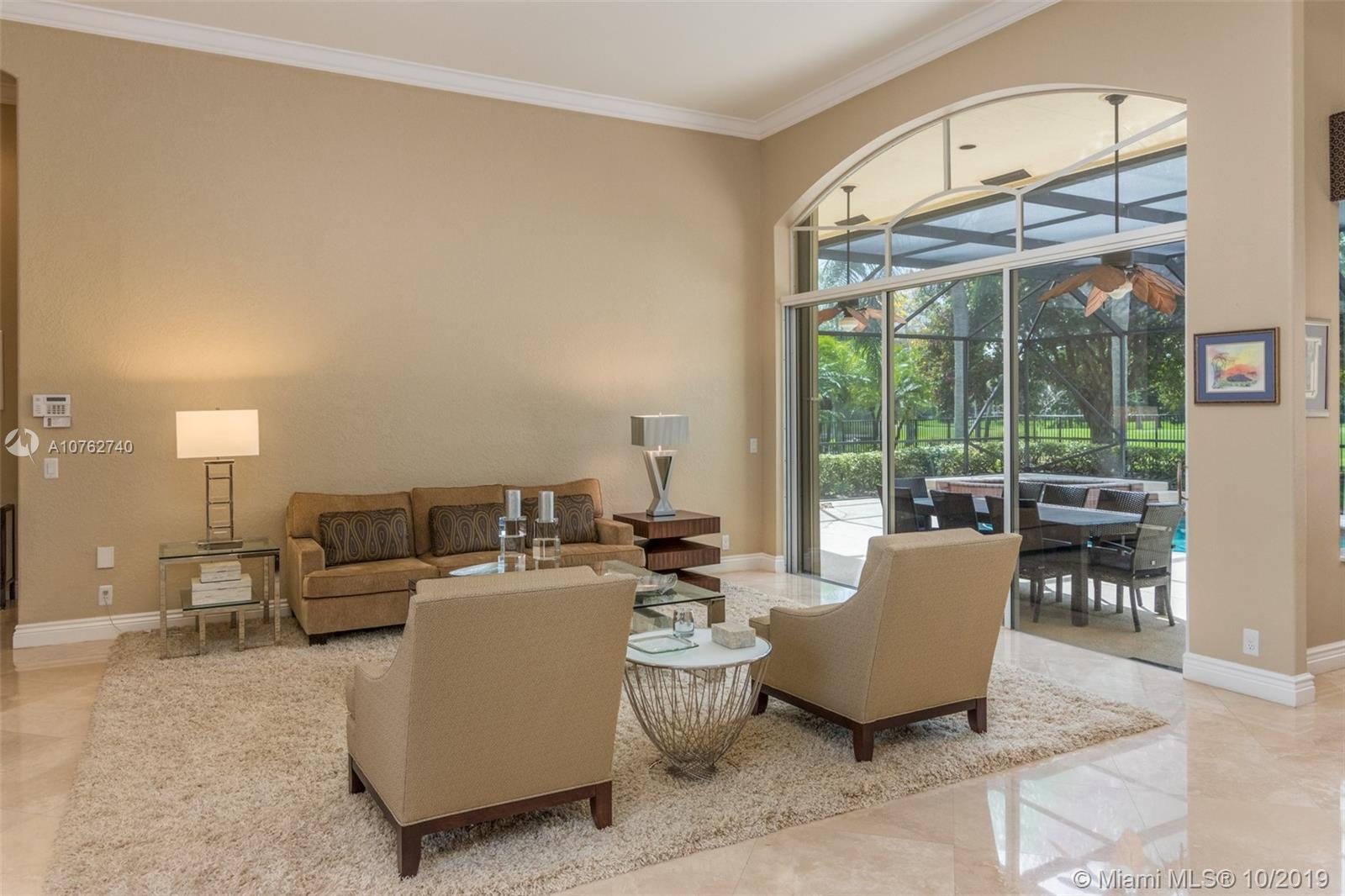 SPECTACULAR VIEWS!! Take in expansive views of the golf course from one of the largest yards in Weston Hills! Gorgeous renovated contemporary kitchen w/ stainless steel appliances, double oven, warming drawer, wine fridge & quartz countertops make it a chef's dream. Phenomenal chandeliers sparkle in dining room, entry and kitchen. Soaring ceilings, large windows & open floor plan with gleaming marble floors create spacious home flowing into sensational screened-in patio & porch and oversized yard. Grand master suite features built-in closets. Perfect for entertaining, this private oasis is located on a tranquil cul-de-sac street and features a three car garage and circular driveway with room for 7-8 cars. Accordion shutters and newer roof.