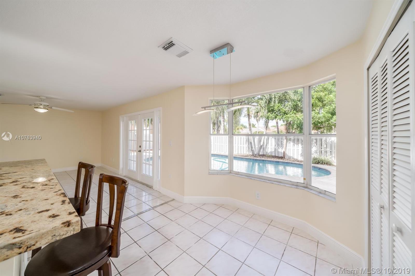 Enjoy this beautiful and bright home, 4 Bed/2.5 Bath, 2 car garage, with pool and oversize corner lot. Imagine relaxing by the pool on a hot summer day, enjoying the company of your family and friends in this 2 story home. Only one neighbor on one side. Substantially remodeled, new kitchen with granite counter tops and stainless steel appliances. Formal dining room, with wet bar, ample living room, as well as a large family room and kitchen with breakfast nook. Comfortable master bedroom with nice size master bathroom, dual sinks and big walk in closet. Tile on first floor and laminate on second floor. Roof and accordion hurricane shutters are new, as well; very easy to close, if needed. Plenty of storage space thru out the house. Perfect for a big or multi-generational family.