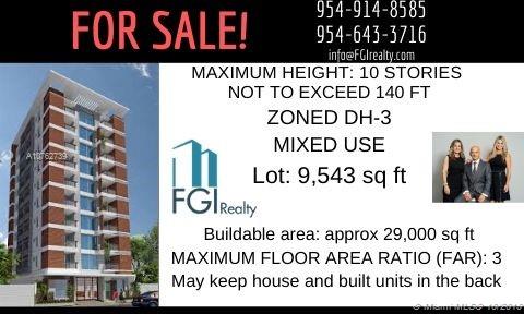 Single family home on a 9,543 Sq feet lot, zoned DH-3- Dixie Highway High Intensity Mixed-Use District, may build up to 10 stories high building; buildable area 29,000 sq. feet. Located in revitalized ART District Downtown Hollywood. 1.5 miles to the beach, few blocks to Downtown Hollywood, Young circle, restaurants and shopping, 5.1 miles to the Fort Lauderdale-Hollywood International Airport. Currently the structure does not meet the highest and best use, price is based on land value. House is in good condition inside