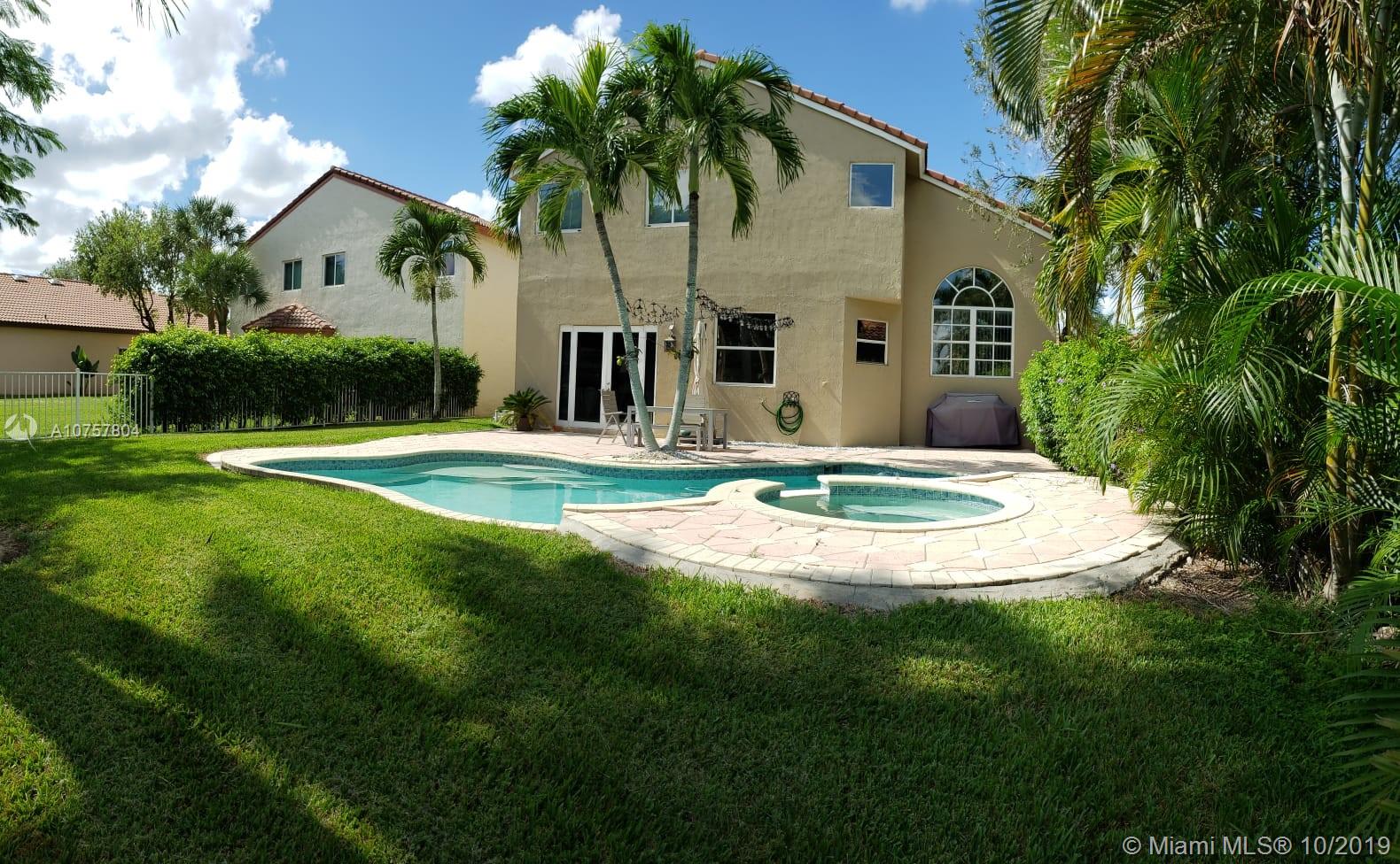 Fabulous House in Golf course community of Grand Palms! 4 bedroom/ 3 baths plus a loft! All rooms on 2nd floor. Beautiful real wood floors throughout first floor. Cathedral ceilings. Carpeteded floors throughout second floor. 2 fully renewed bathrooms. Recessed lighting with dimmers throughout. Great pool with Jacuzzi on the lake plus plenty of yard space. Overlooking the 7th hole. Great for entertaining! Granite countertops with brand new S.S. appliances in the kitchen