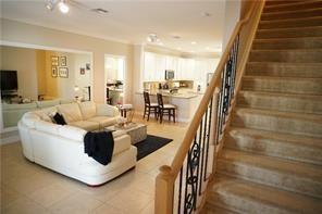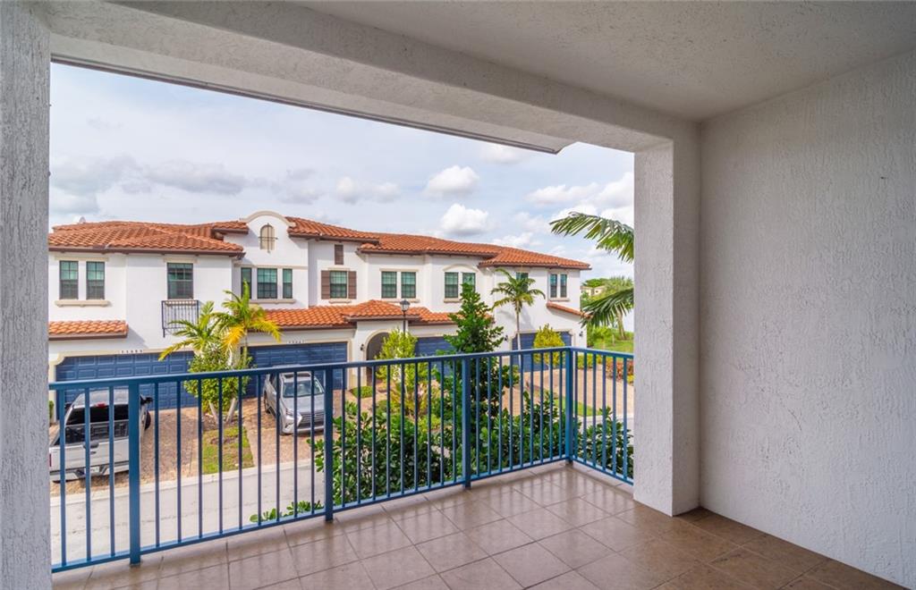 Spacious tri-level townhome w/ attached 2 car garage!One bedroom on ground level w/ on suite & large walk-in closet!Gorgeous upgrades throughout this home include:Large kitchen w/ ivory color 42" cabinets, granite tops PLUS prep island.Breakfast bar flows into the bright & large living rm featuring built-in custom mirrors. Stunning South Florida sunsets from one of the largest & most spacious 2nd story covered terraces and perfect for parties! The 3rd level boasts an oversized master suite w/ sitting room,large walk-in closet,his & hers sinks,roman tub, walk-in shower w/ frameless glass & built-in bench. 3rd bedroom features an on suite bathroom perfect for your guests. Located in the 1st phase w/ a very short walk to the pools, clubhouse & mailboxes. Great tenant if you want to buy & rent