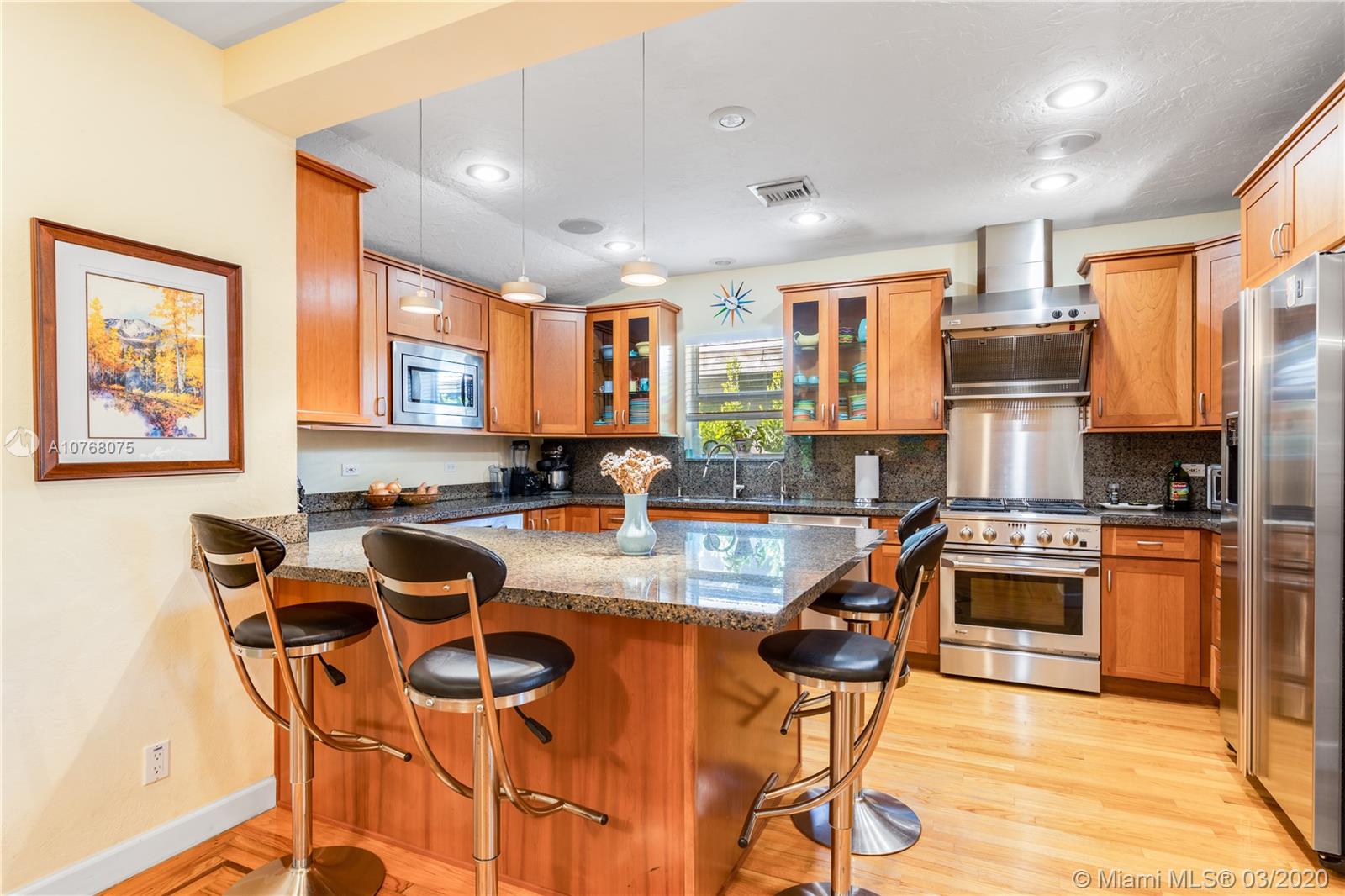 Enjoy sweeping La Gorce Golf Course views from this beautiful 4 BD/3 BA home on one of the most coveted & tranquil streets in the highly sought after Lakeview neighborhood. Lush landscaping & tropical palms surround this true oasis, located on a rarely available oversized 9,375 SF lot. Take in views of your sparkling pool from your private master suite, Florida Room & throughout. Natural light illuminates the exquisite hardwood floors, open living/dining room & chef’s kitchen w/stainless steel appliances and gas range. This home is made for entertaining w/private courtyard,covered patio & more!