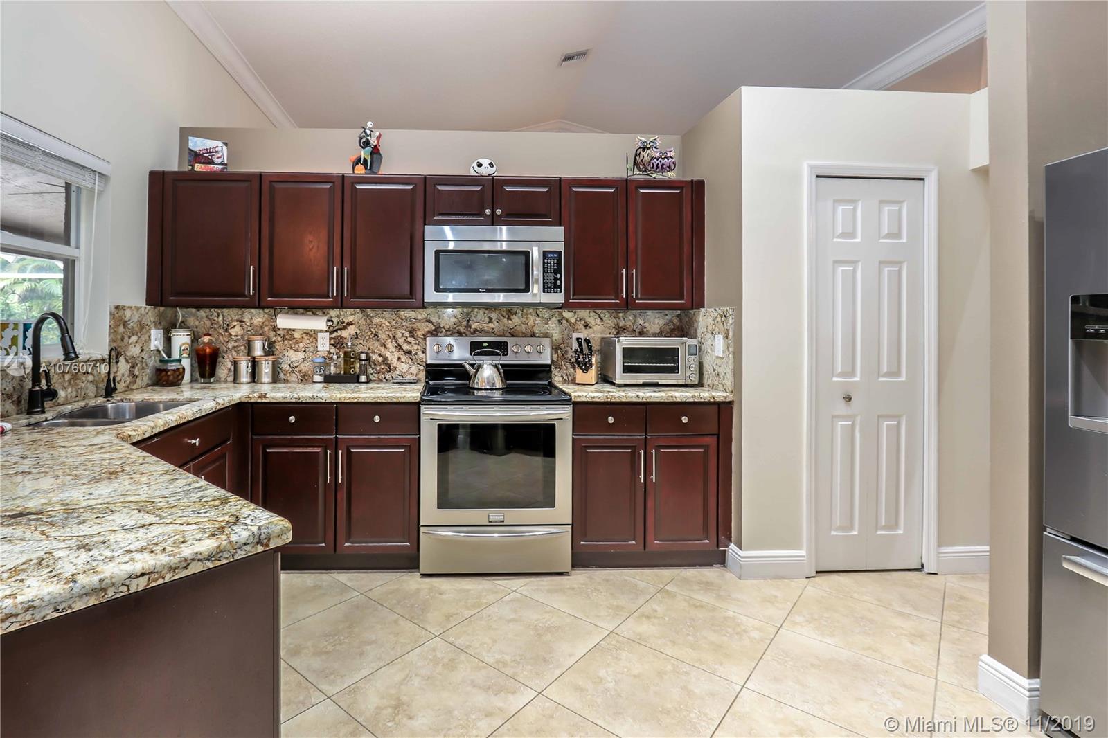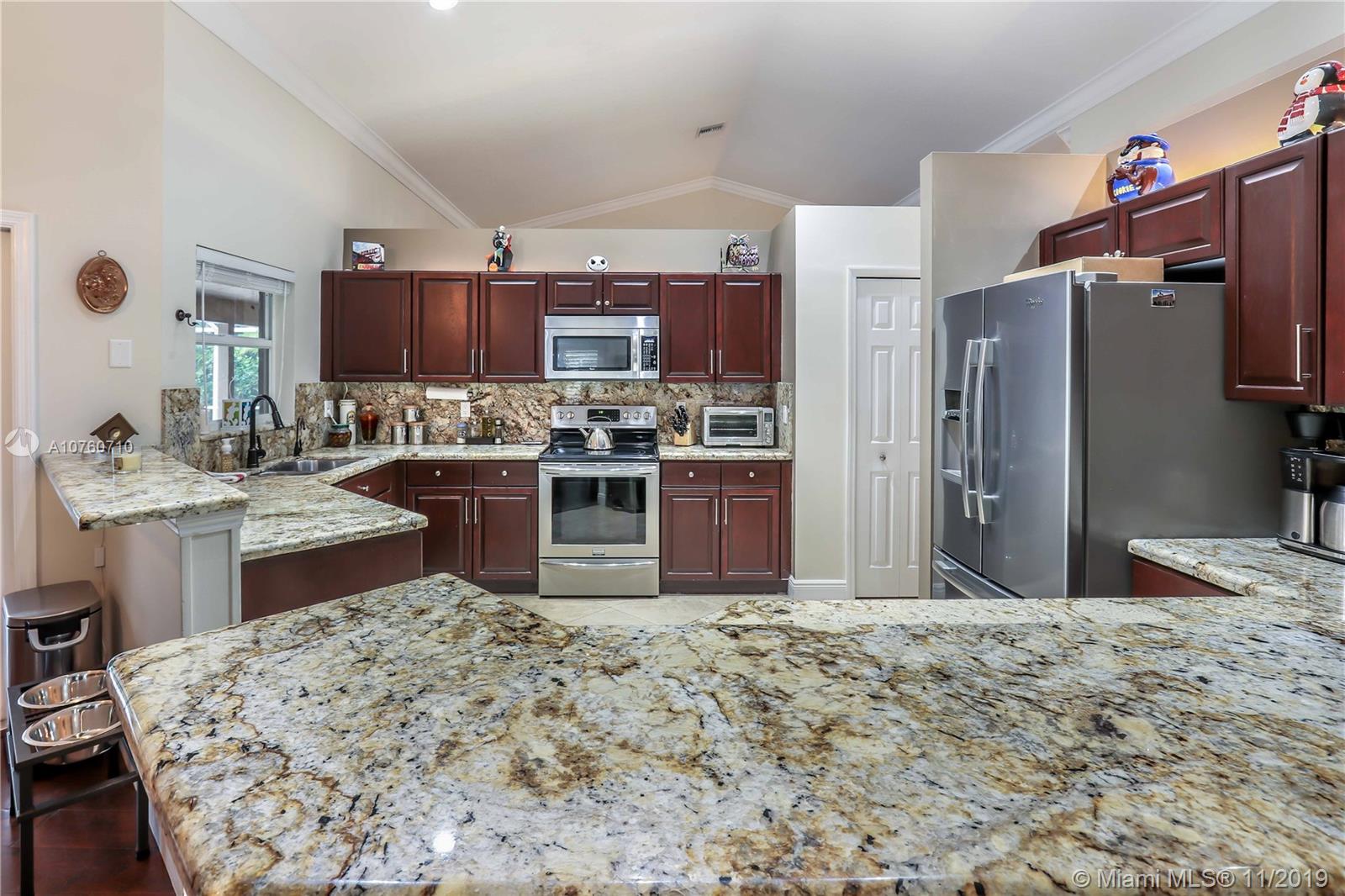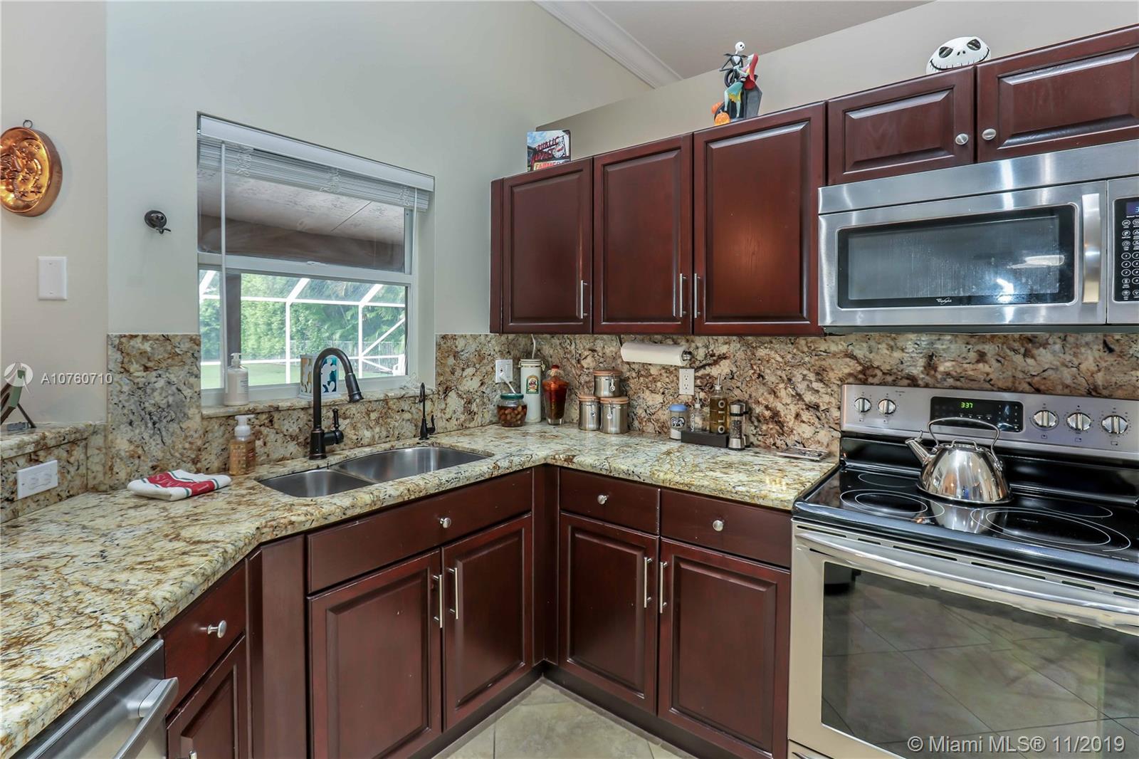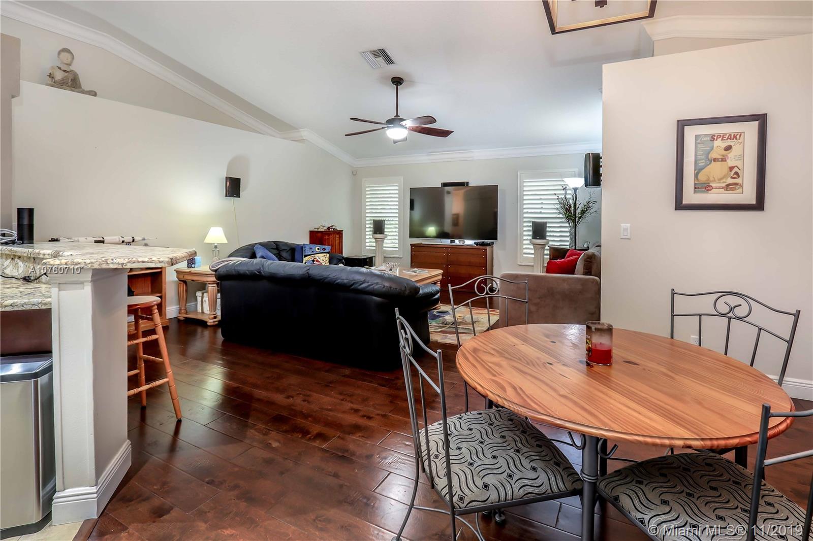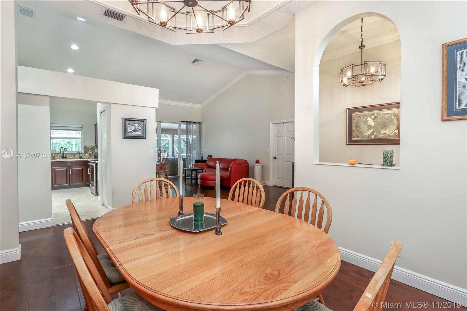 Desirable Mission Bay Community, Cordova Estates! 4 Bedroom, 2.5 Bath, Smart Home, with vaulted ceilings, Hardwood floors in living areas. Crown molding throughout. Spacious Master BR with French Doors leading to patio & pool. Master Bath with Double vanity, Spa Tub & glass enclosed shower. Walk in closet. Updated Guest bath rooms. Plantation shutters in dining, family & master. Kitchen with wood cabinets, pantry, granite counters, stainless steel appliances, open to family room. Large Patio & Pool area screened in, great for entertaining. Heated Salt water pool. Huge Private backyard featuring 2 fully fenced in areas including a dog run with automatic electric dog door. Newer Roof, A/C, Ducts. New high end washer & dryer. EV plug/outlet for E CAR. Low HOA. Fantastic Clubhouse
