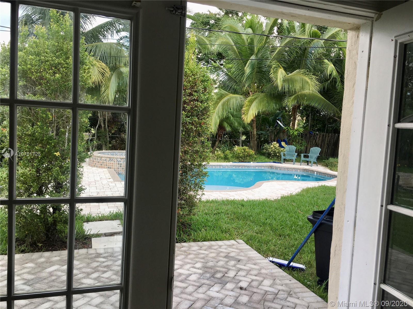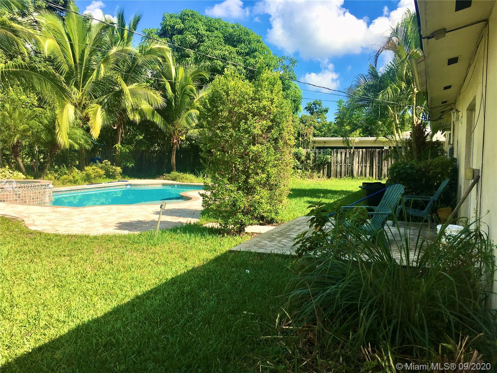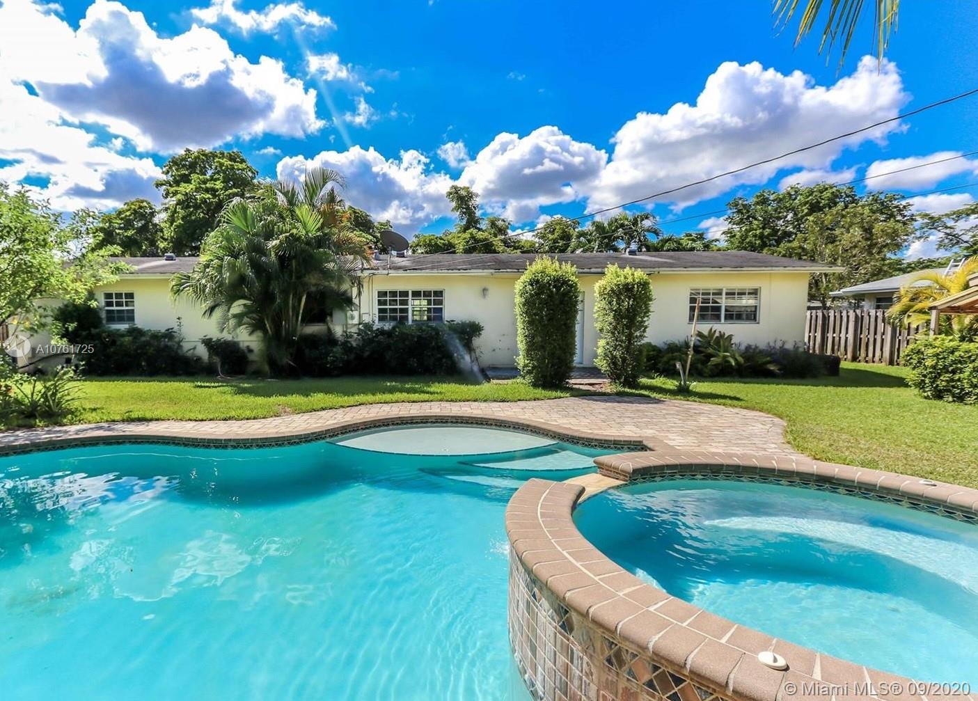 Back on the market New Kitchen , renovated bathrooms.This beautiful home is a 3 Bed/2 Bath w/beautiful pool on 13,000 Sq ft lot. Spacious kitchen harmoniously mixes in with the living room, . Tiles floors throughout. The Master bedroom has a walk in closet w/ a spacious master bath. Fenced tropical landscaping which extends to a beautiful heated pool w/ Jacuzzi. Circle driveway for additional parking.This property features an additional space of a playroom in garage.
