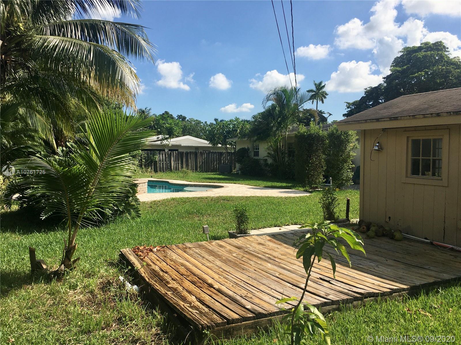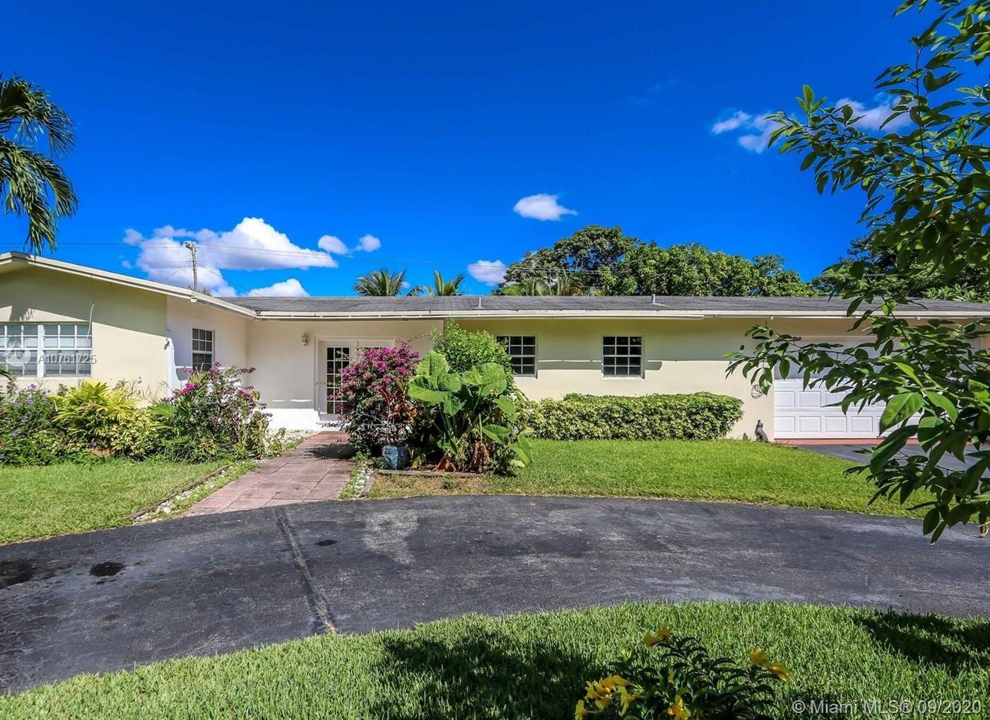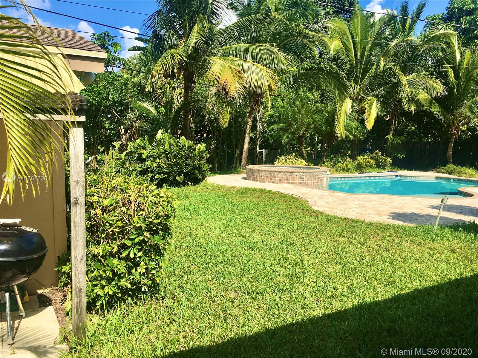 Back on the market New Kitchen , renovated bathrooms.This beautiful home is a 3 Bed/2 Bath w/beautiful pool on 13,000 Sq ft lot. Spacious kitchen harmoniously mixes in with the living room, . Tiles floors throughout. The Master bedroom has a walk in closet w/ a spacious master bath. Fenced tropical landscaping which extends to a beautiful heated pool w/ Jacuzzi. Circle driveway for additional parking.This property features an additional space of a playroom in garage.
