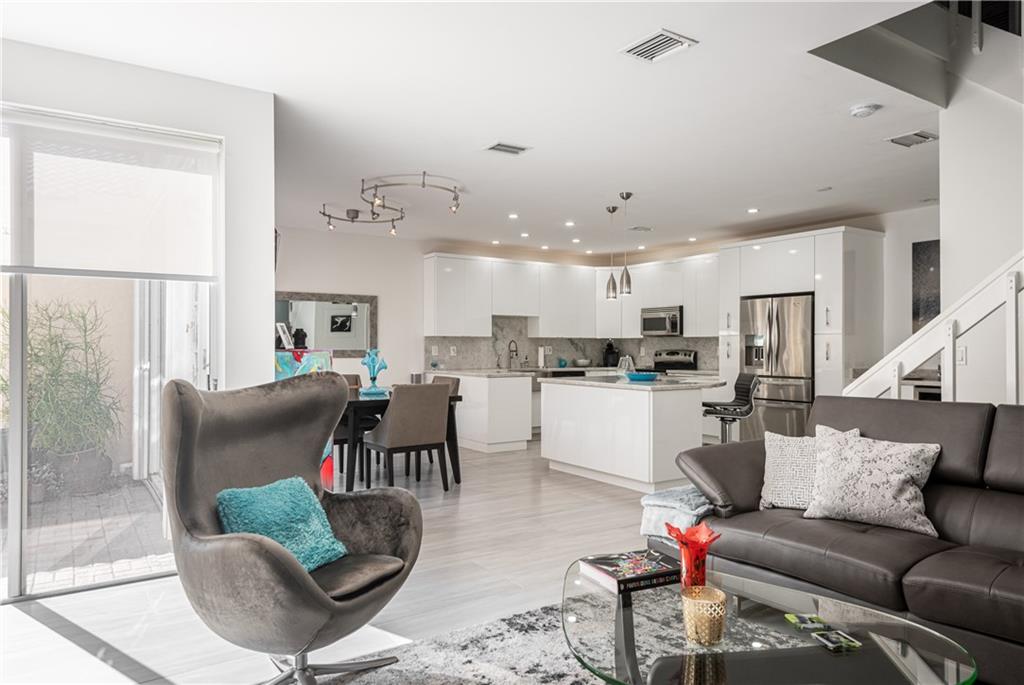 COMPLETELY REMODELED 3/2.5 TH WITH STUNNING NEW ENLARGED KITCHEN THAT FEATURES QUARTZ COUNTER TOPS, STAINLESS STEEL APPLIANCES, LARGE ISLAND THAT SEATS 6 COMFORTABLY, BUILT IN WINE COOLER, AND NEW WHITE CABINETS WITH PULL OUTS AND SELF CLOSING DRAWS. RECESSED LED LIGHTING THROUGHOUT THE KITCHEN AREA. BEAUTIFUL PORCELAIN FLOORS DOWNSTAIRS AND TILE/WOOD UPSTAIRS. NO CARPET. 1 CAR GARAGE . MASTER BEDROOM OFFERS A LARGE WALK IN CLOSET, SCREEN IN BALCONY IN THE GUEST BEDROOM, AND HURRICANE ACCORDION SHUTTERS THROUGHOUT. POPCORN CEILINGS HAVE BEEN REMOVED AND NOW SMOOTH. DESIGNER BLINDS. PRIVATE COURTYARD WONDERFUL FOR ENTERTAINING, RELAXING, OR BBQ'S. CLOSE TO GUEST PARKING. GUARD GATED COMMUNITY 24/7 JUST 1 MILE FROM BEACH. AMENITIES INCL SWIM, TENNIS, GYM, CLUBHOUSE, BASKETBALL, & MORE
