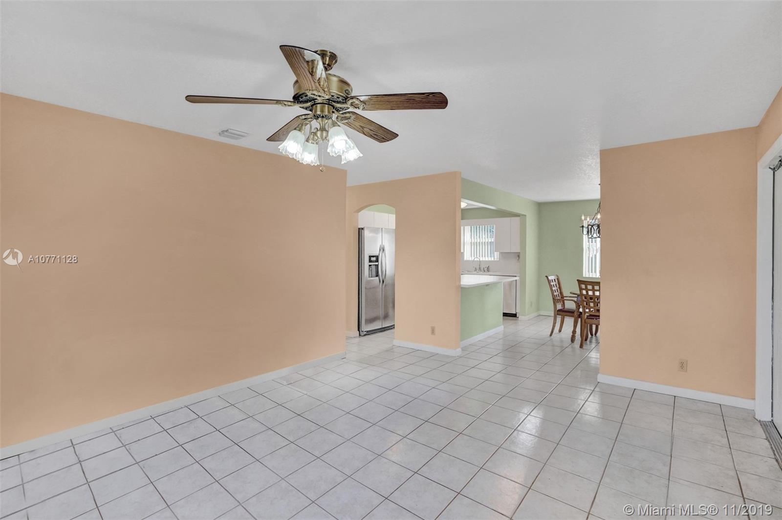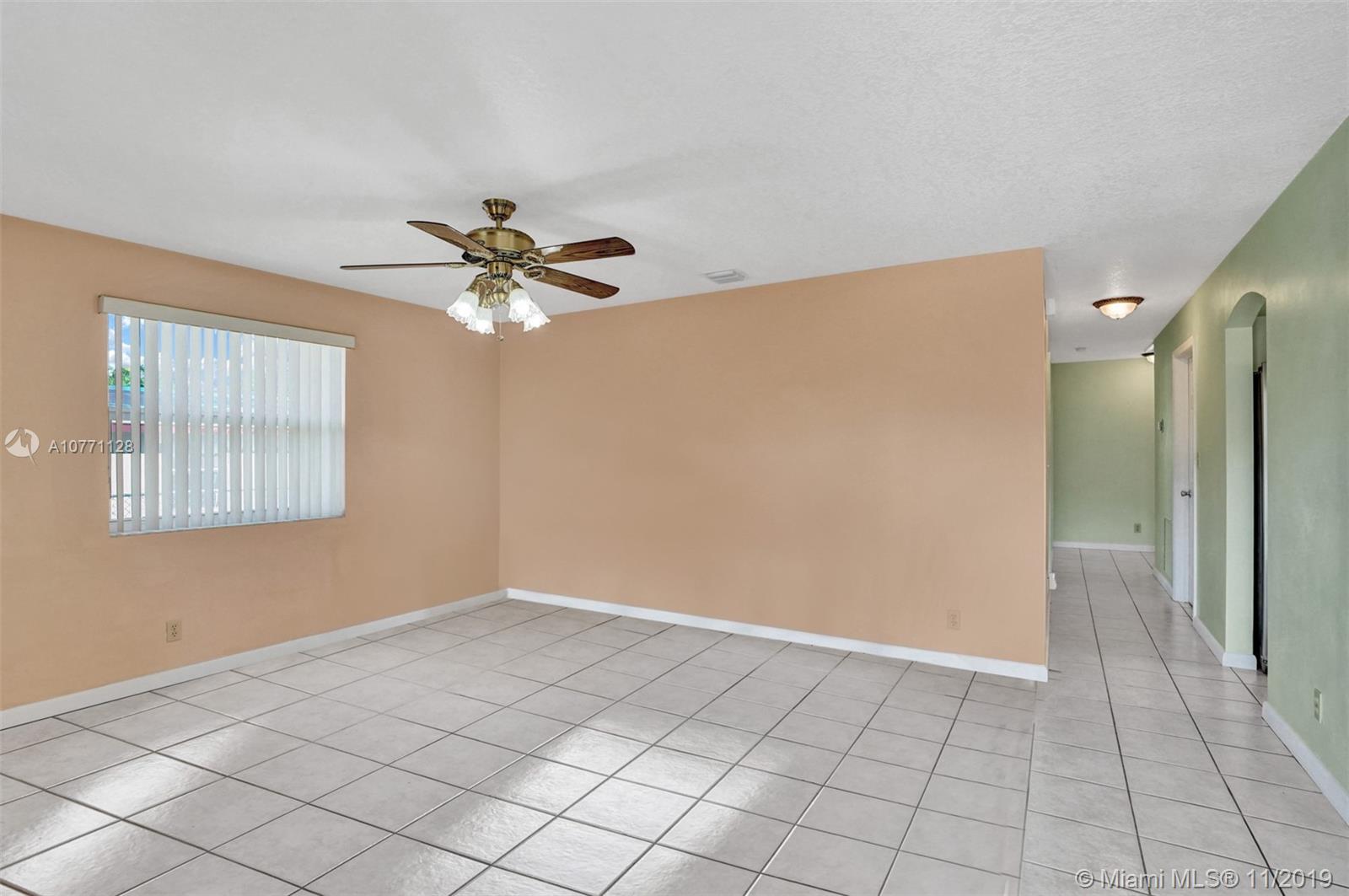 This fantastic single family home in Hollywood Park features high impact windows, 3 bedrooms 2 bathrooms, 2 driveways . One fitting up to 4 cars and the other is 40' deep, large enough for an RV or a boat. Home has ceramic tiles throughout, kitchen with brand new stainless steel appliances. Great Layout with formal living room , separate dining , family room & laundry room. Master & guest bedroom have a walk in closet. Yard has tropical fruit trees , large shed for storage and fencing around the home. Home is built 18" higher from ground. Roof 2001, PVC pipes, No Association. Make this your next home!!!