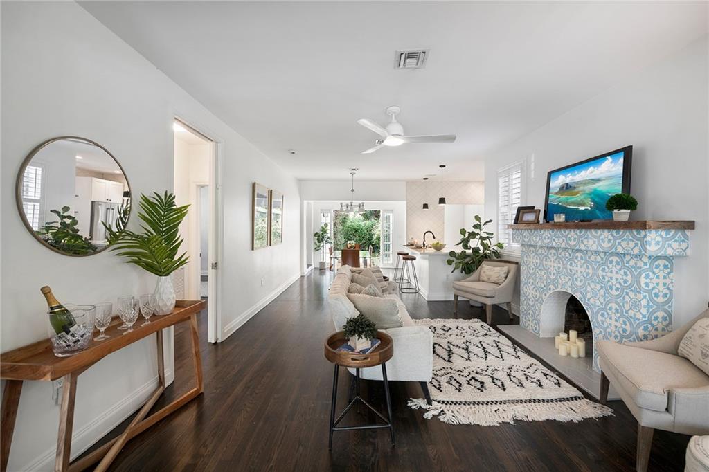 Gorgeous renovation of 1931 classic 3/2 cottage and 1/1 guest house. High ceilings, wooden floors through out main living and bedrooms. Open living, dining & kitchen areas. Kitchen has gas range, island seating and tons of custom cabinetry. Master Bedroom with en-suite marble bath completes the inside. Fabulous entertainer's back yard including turf lawn, covered terraced patio and outdoor kitchen which joins the 1/1 guest house with kitchenette. Unique design details abound!