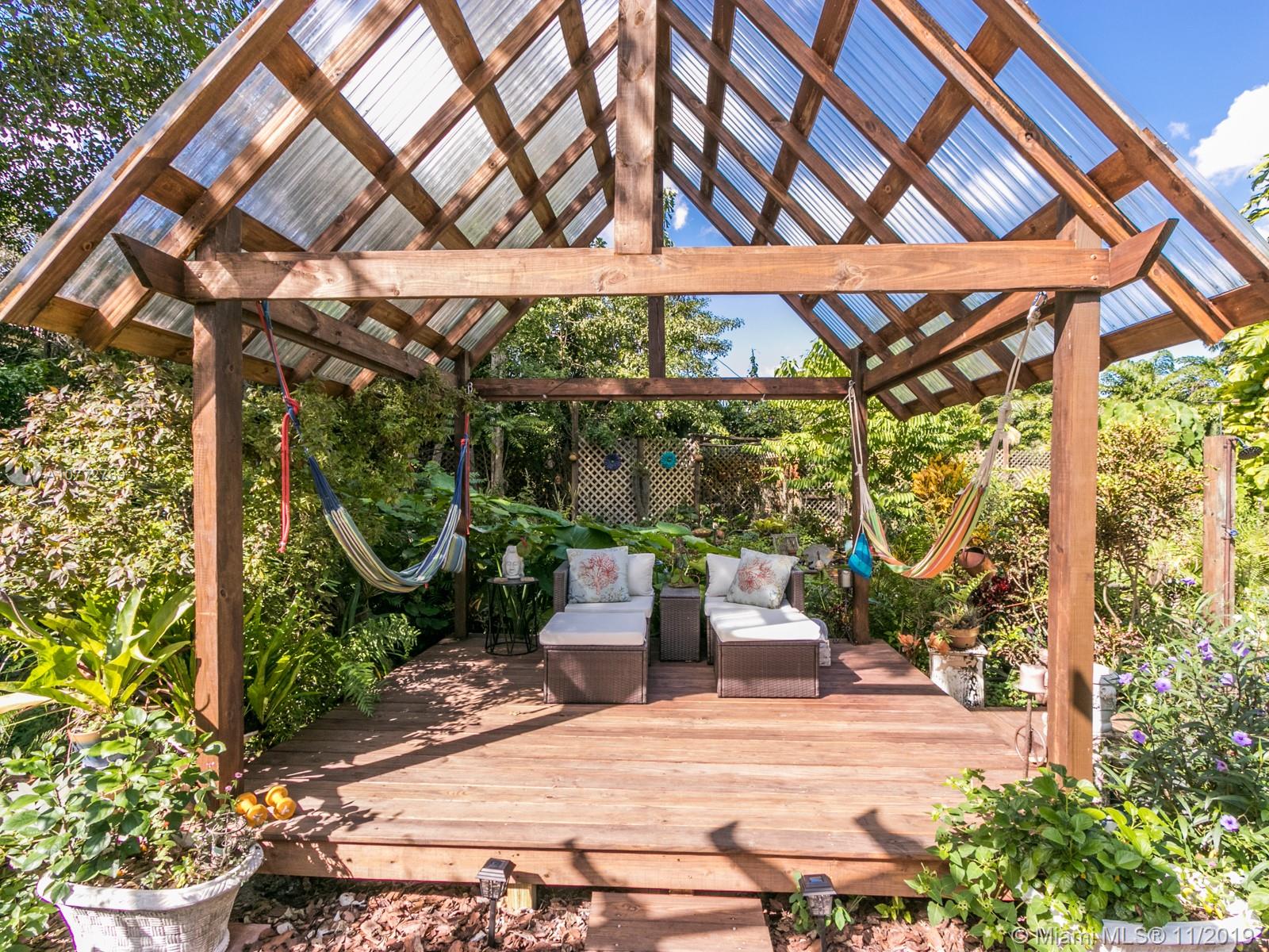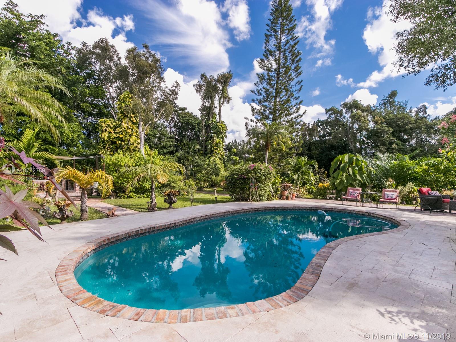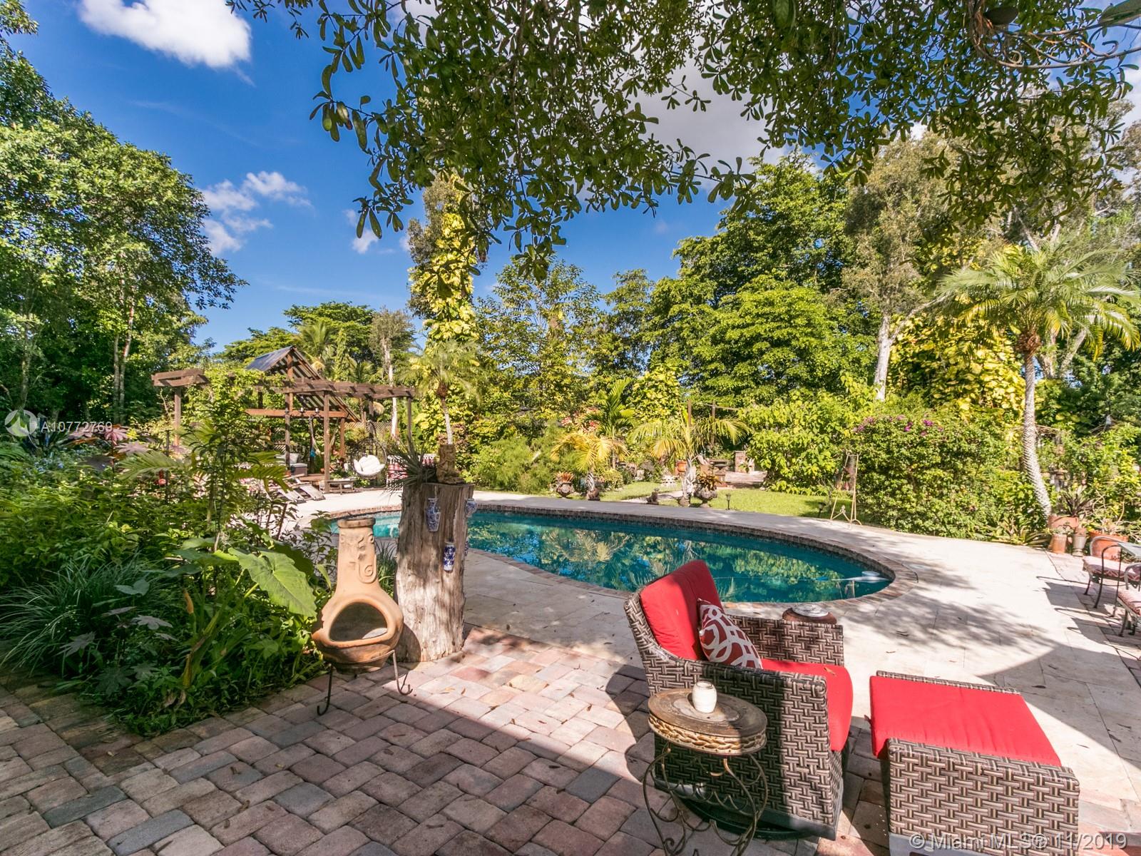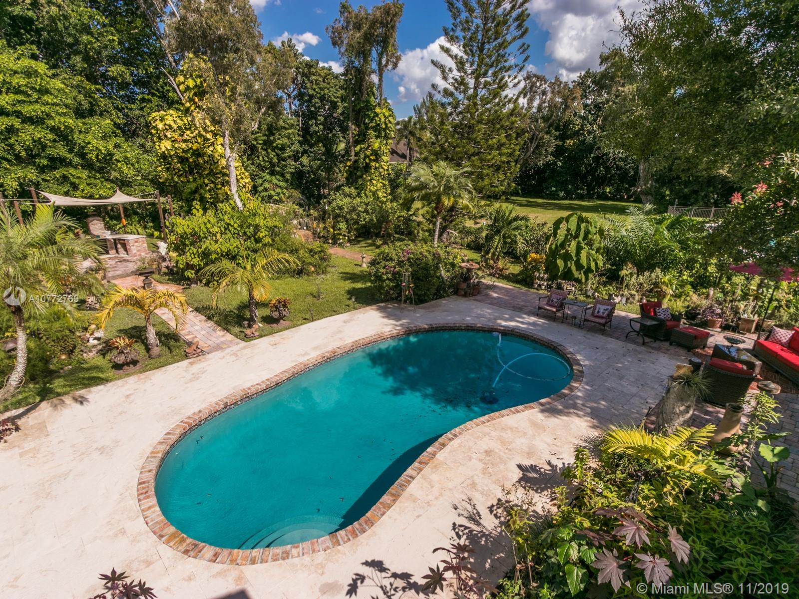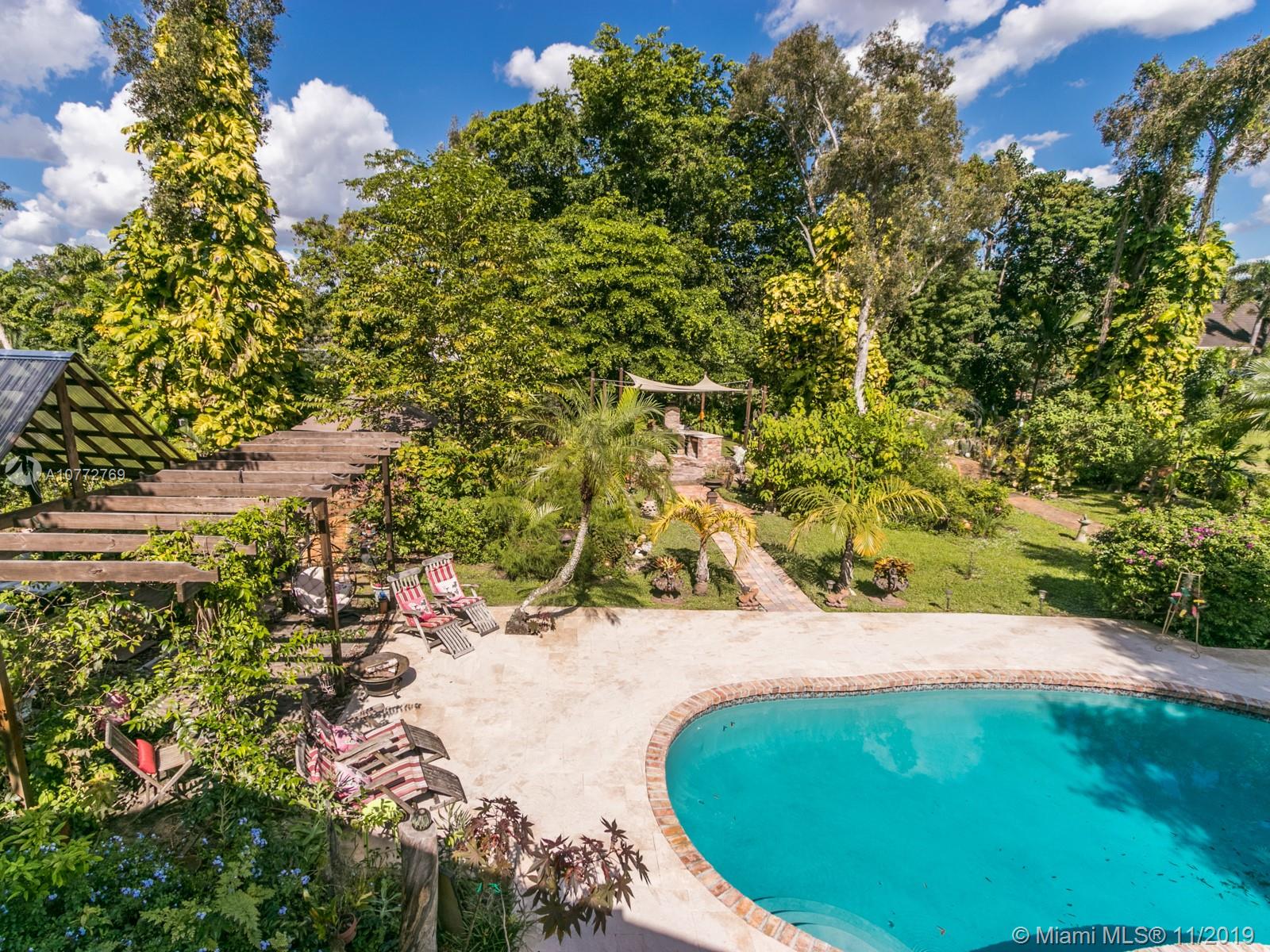 A magical property in every sense. Recently updated 4BR, 3BA pool home on an acre of land. Soaring ceilings with skylight windows and exposed beams in the living room and an exposed brick double fireplace shared with the family room. Wander the extensively landscaped paver paths to gazebos, pergolas, decks, water features and restful areas scattered through the lush property. Rear wall is lined with windows and glass sliding doors to let in maximum light and a view of the grounds. Modern white kitchen with gas range and stainless appliances. Master bedroom has a huge deck overlooking the pool and backyard areas. One bedroom and bath downstairs. Large laundry room and garage. Must be seen to be fully appreciated. Nestled among million-dollar estate homes in lovely Plantation Acres. No HOA.