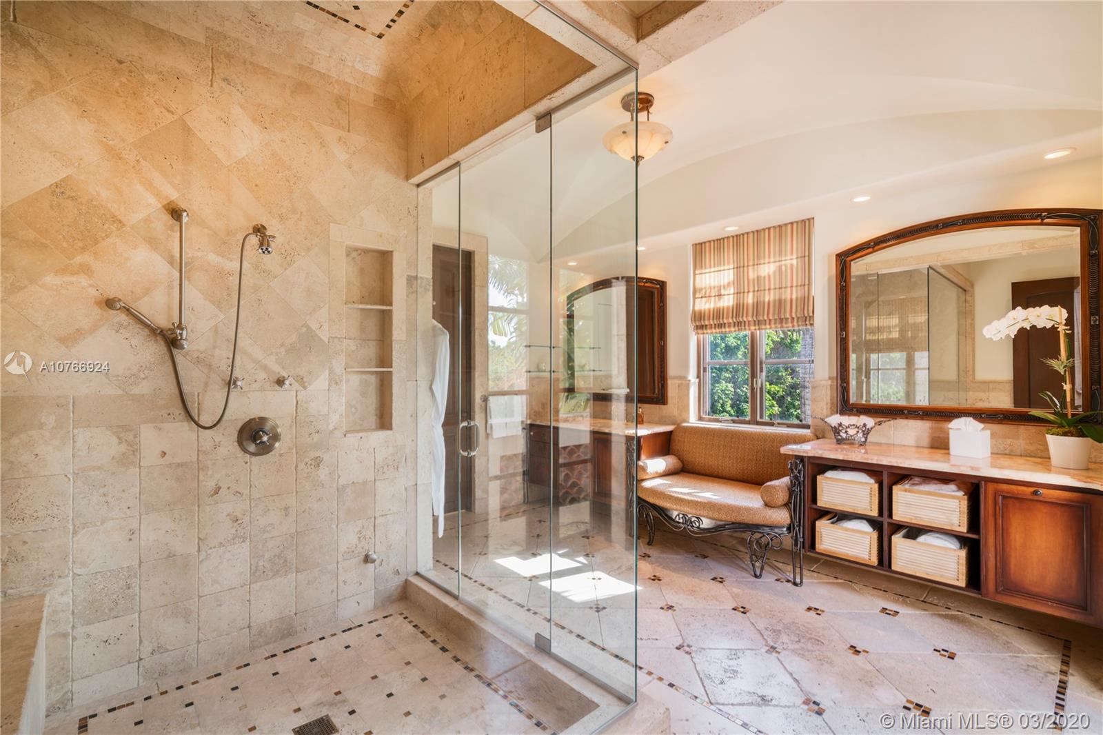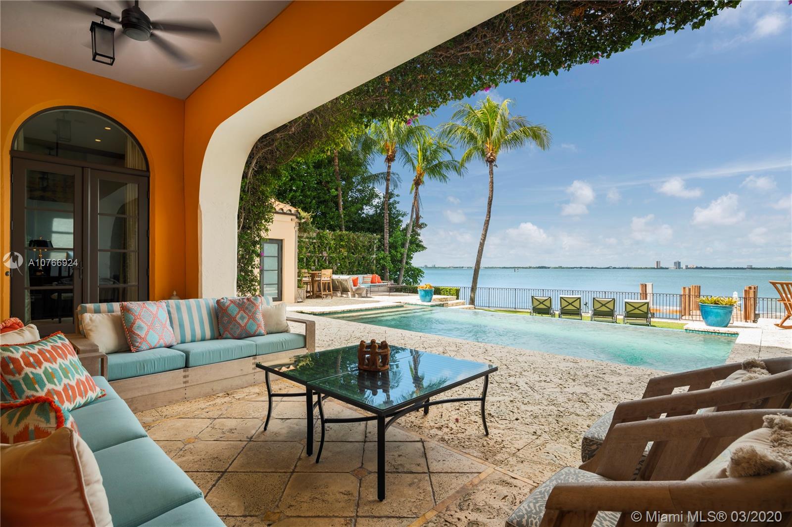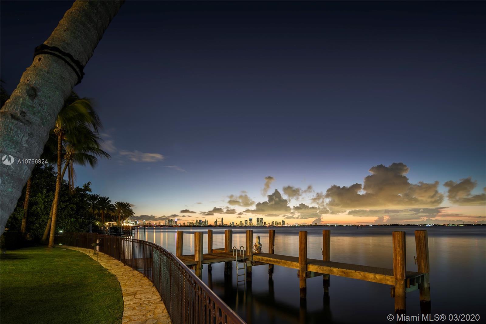Live the ultimate luxury Miami Beach lifestyle in this magnificent 10,709 square-foot waterfront estate located on coveted N Bay Rd with Miami Beach’s most breathtaking panoramic views of the Miami skyline and Biscayne Bay. With 101’ on the wide bay sitting on a 17,120 square foot lot, this private, gated Mediterranean residence is bright and airy featuring spectacular 13-foot coffered ceilings throughout, intricate details and finishes, large gourmet kitchen, formal dining room and large gym. The expansive master suite encompassing the entire left wing of the second floor beckons with a private balcony, and spacious his and hers closets. Ideal for entertaining, the home’s exterior amazes with an Infinity pool, private dock and boatlift.