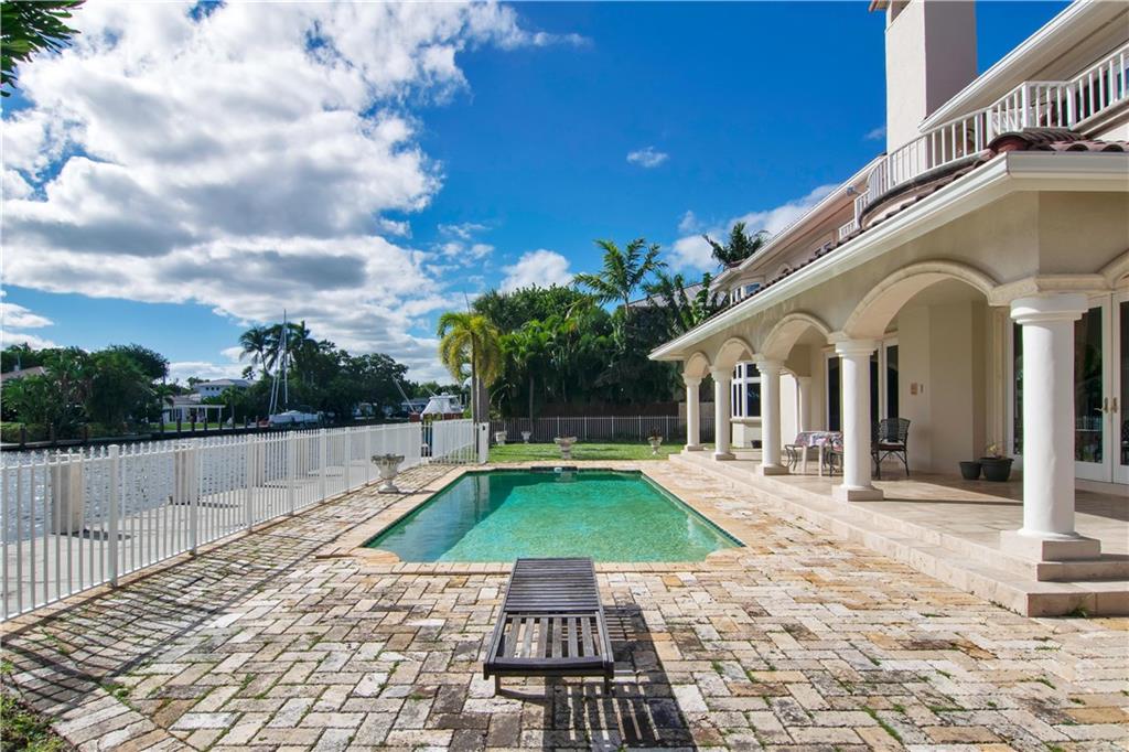 Classic Mediterranean 2 story 5 BR/3.5 Baths with Ocean access and Southern exposure located on the 120' wide Rio Verde canal with 80 feet on the water and a concrete dock with davits and power just waiting for your yacht to arrive. Traditional in design featuring 2 fireplaces, hardwood staircase and built-in loft library area. The massive master suite with sitting area and 2 sided fireplace has its private terrace overlooking the patio and waterway. The master bath has 2 walk-in closets oversized shower, spa tub and separate his and hers. Enjoy this old world elegance with soaring ceilings Impact windows, etched glass entry, French doors, crown molding and volume ceilings and more. Priced below current market value of $1,777,000 and being offered at $1,500,000