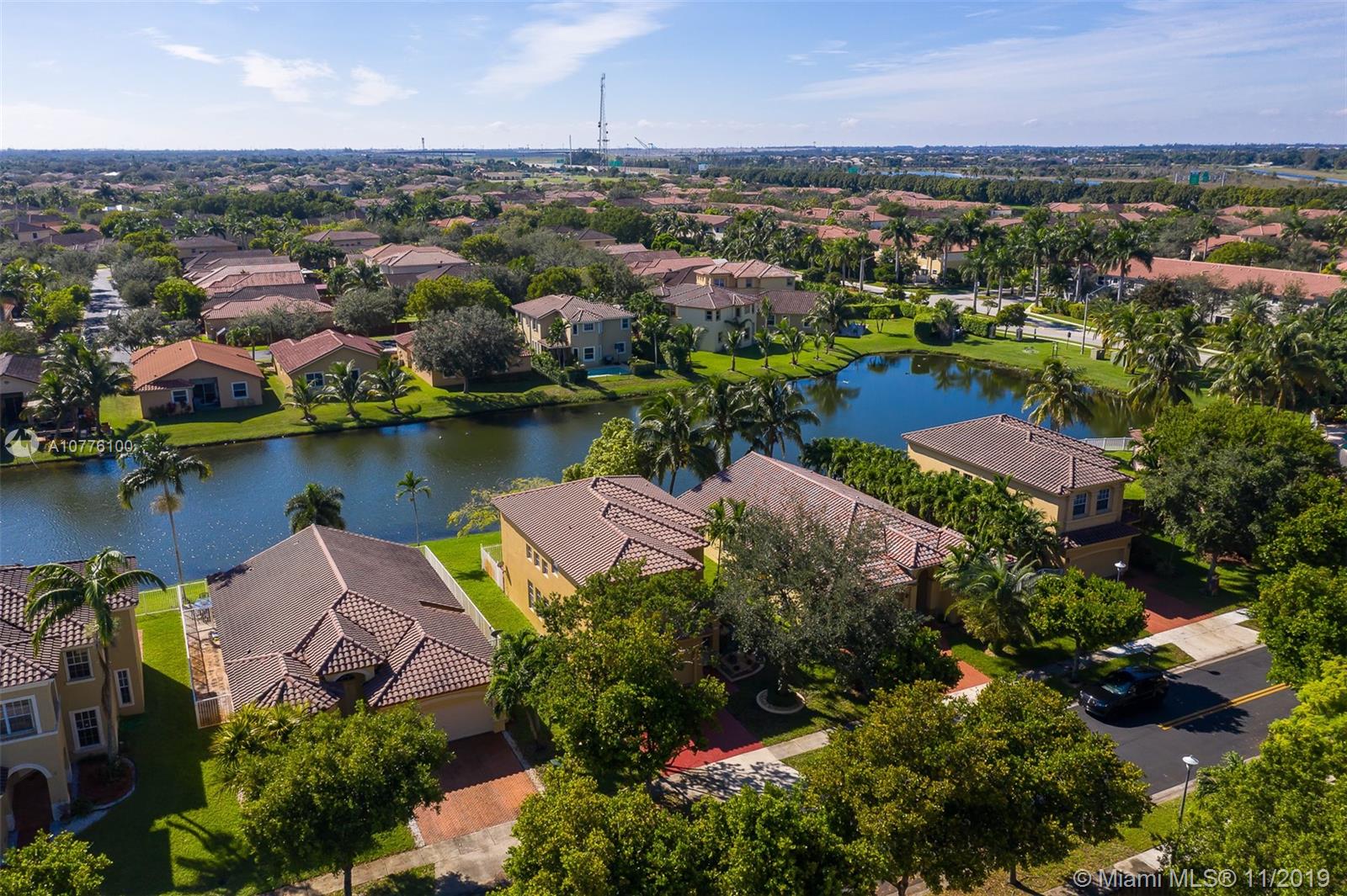 Stunning views in highly sought-after Santorini Estates in Vizcaya with resort style pool and amenities! Incredible waterfront property with volume ceilings and lots of windows for natural lighting! Beautiful granite counter tops in kitchen with stool seating area for family enjoyment. Oversize master bedroom with whirlpool tub, dual sinks and separate shower. Formal dining area with family room and living room overlooking the water. Perfectly located close to all major highways for access to anywhere. Backyard can be expanded and pool added. Enjoy the beautiful sunrise and sunsets while overlooking the water.