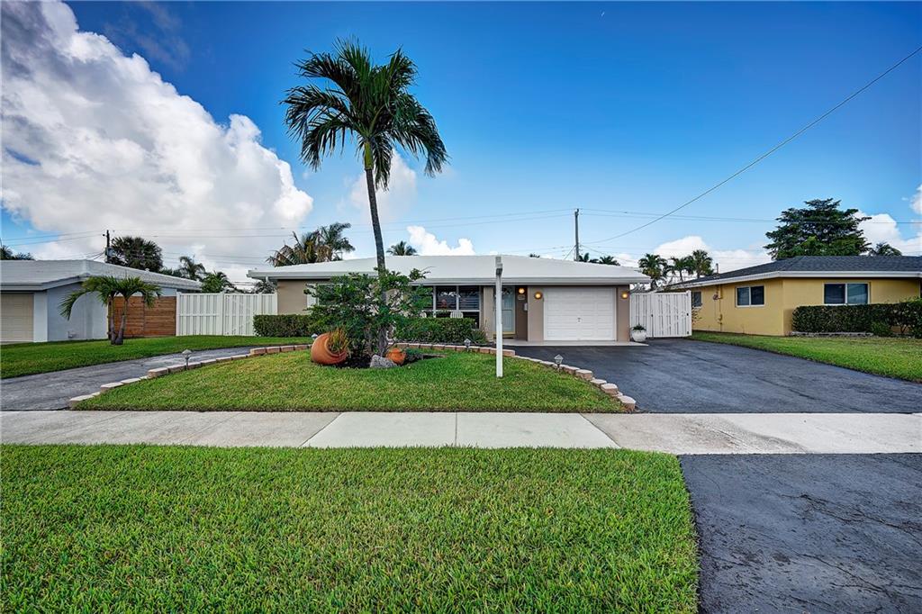 Welcome Home! nestled in East Pompano Beach, only a short distance to the beach, shopping, dining and entertainment, you will fall in love with this home from the minute you pull into your private circular driveway,freshly painted exterior, the interior features open floor-plan ideal for entertainment, beautiful kitchen with lots of storage, ceramic tile throughout, expansive bedrooms and fully remodeled bathrooms, brand new carpet, brand new washer & dryer, new a/c ducts and unit, new tankless water heater, plantation shutters, impact windows and doors, formal dining area[leading to your tropical oasis, new covered outdoor space, freeform spa/mini pool, manicured grounds surround the entire backyard, outdoor shower, and new PVC fence for maximum privacy. A MUST SEE!