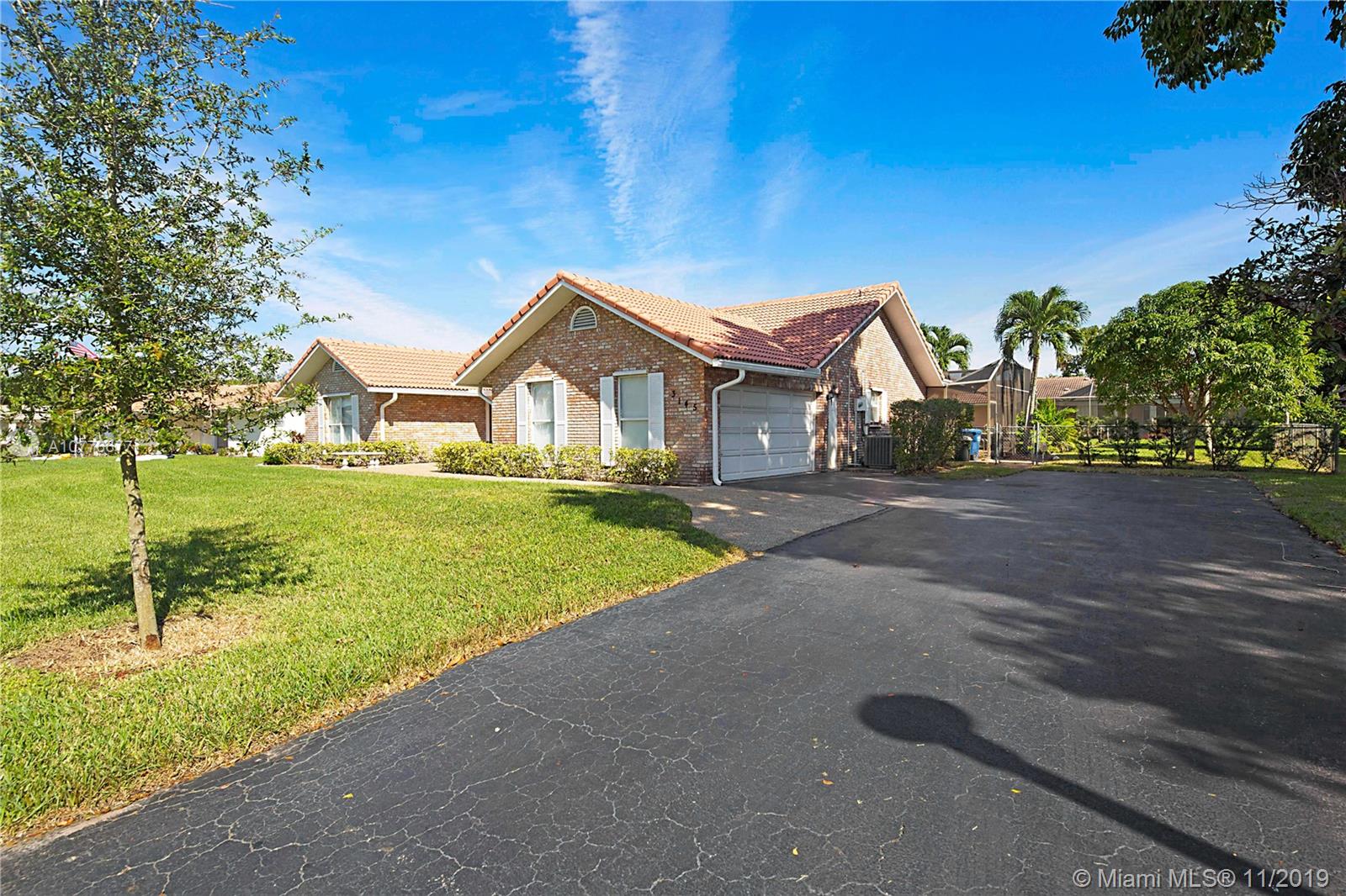 Beautiful brick home, located in the desired community of Coral Springs Country Club. This updated 4 bedroom 2 bath home is situated on a expansive 13,750 sqft lot w/ an attached 2 car garage & driveway that can fit 6+ cars. Formal living/dining & family room. Upgraded kitchen open to breakfast nook & family room. Wood laminate flooring throughout the entire home. Large indoor laundry room w/ utility sink. Fenced yard w/ multiple fruit trees (mango, papaya, avocado), perfect entertaining patio w/ brand new flat roof over looking the screened pool, plenty of yard space past the screened enclosure. A/C 5 years old, new tankless water heater, newer sprinkler and pool pump (2016), new garbage disposal, hurricane shutters, barrel tile roof only 15 years old. No HOA & more! Video tour available!