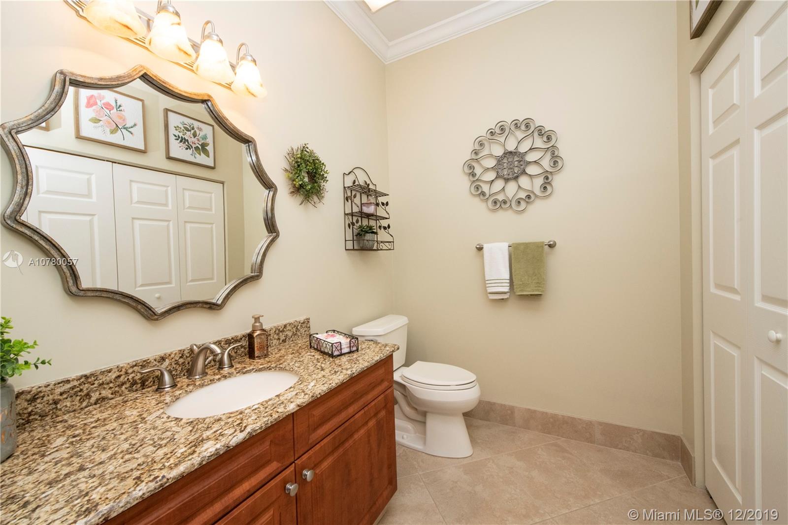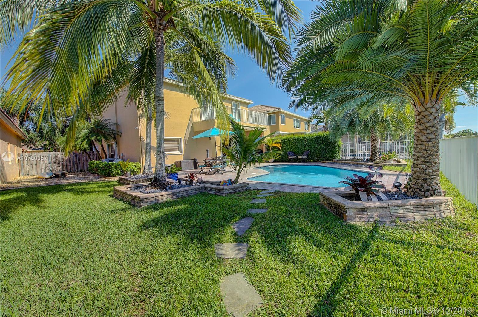 Grab your favorite beverage and enjoy the Sunrise and Sunsets from your master bedroom balcony overlooking wide lake views and your beautifully sparkling blue pool. Nestled in Ruby Cove at Emerald Estates, a gated Weston community, this 4 bedroom, 2 1/2 bath home is ready to move right in! Crown molding and upgraded baseboards throughout living area. Kitchen with granite and stainless appliances, open concept floor plan. Newer carpet, and tile flooring with interior neutral colors. Pool and Patio have a Sunsetter awning for the ultimate in comfort. Full Hurricane accordion shutters. Full service community includes lawn maintenance & cutting, fertilizing, tree/palm trimming, weed prevention, sprinklers, alarm system monitoring, cable TV and internet, as well as a community pool and gym.