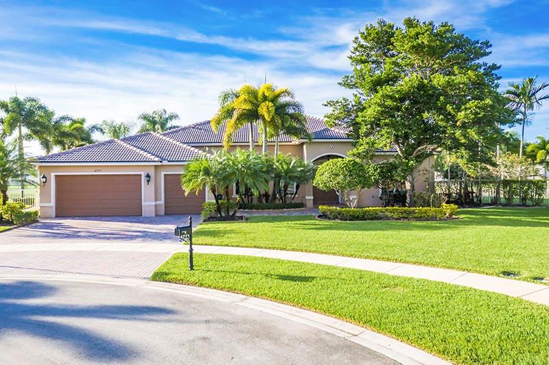 Gorgeous waterfront home on largest lot in the neighborhood at 1.2 acres on a quiet cul-de-sac. Impeccable landscaping creates a resort style feel around the expansive custom salt pool with waterfalls, & LED color lighting and marble pool deck. The home features a triple split layout. Those who love to cook will relish in the gourmet kitchen w/island, granite counter tops, custom granite table, and stainless steel appliances. Through out the home you will find crown moldings, indoor/outdoor surround sound, upgraded alarm system, accordion storm shutters. All new porcelain floors in common areas and master bedroom, secondary bedrooms and game room have engineered wood or laminate floors, and new baseboards throughout. 2 New ACs.