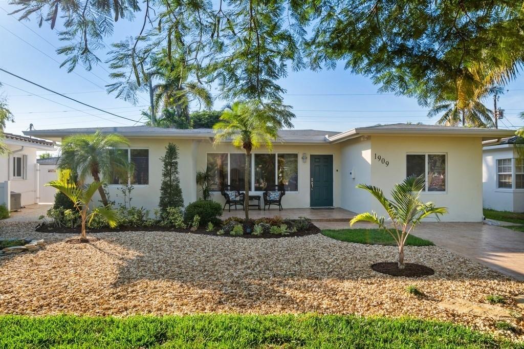 Nicely updated three bedroom, two bath home on tranquil street in popular Poinsettia Heights! Open floor plan includes spacious living and dining area leading to family room with beamed wood ceilings which opens to patio with retractable awning and cute back yard. Updated kitchen features light granite counter tops, white cabinetry and stainless appliances. Split Bedrooms, Impact windows and doors, and Interior Laundry Room with extra storage! 24" Tile Flooring throughout. Exterior features include stamped concrete driveway and patios, fully fenced backyard, fully permitted shed, and low maintenance landscape plan. Ideal location is only minutes away from Downtown Fort Lauderdale, Las Olas Boulevard, Wilton Drive, Fort Lauderdale Beach, Galleria Mall, restaurants, shopping and more!