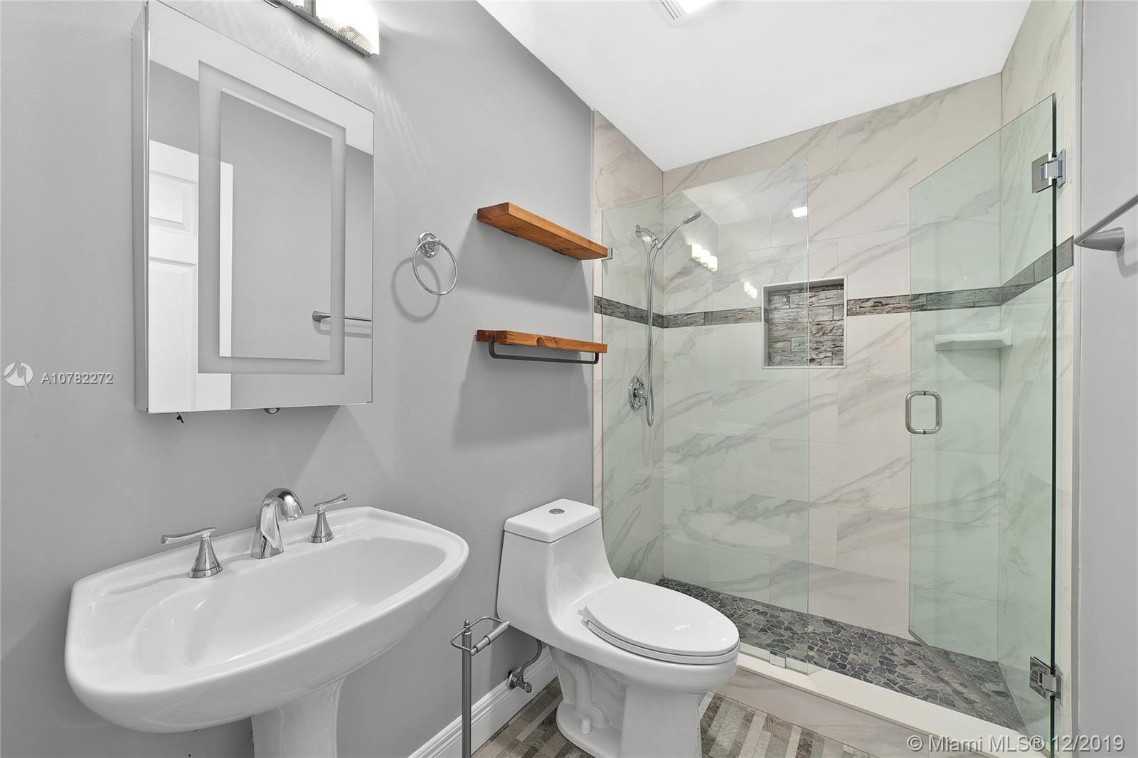 This beautifully upgraded 3 bedroom, 2 bath home features over 1600 sq ft of open modern design floorplan in New River Estates. The vaulted ceilings in the living, dining, and family rooms showcase the spaciousness with plenty of natural light. The updated chef's kitchen offers beautiful mahogany cabinets, stainless steel appliances, granite countertops, and a large kitchen island. The spacious master suite has his/her's closets, stunning wood facade porcelain flooring, and a master bathroom with a large walk-in shower. 2 more bedrooms share an upgraded guest bath. The lushly tropical landscaped backyard offers a sprinkler system as well as an enormous covered and screened patio with custom cement flooring. Privacy, comfort, great curb appeal, this house has everything!