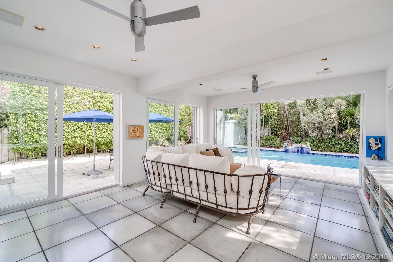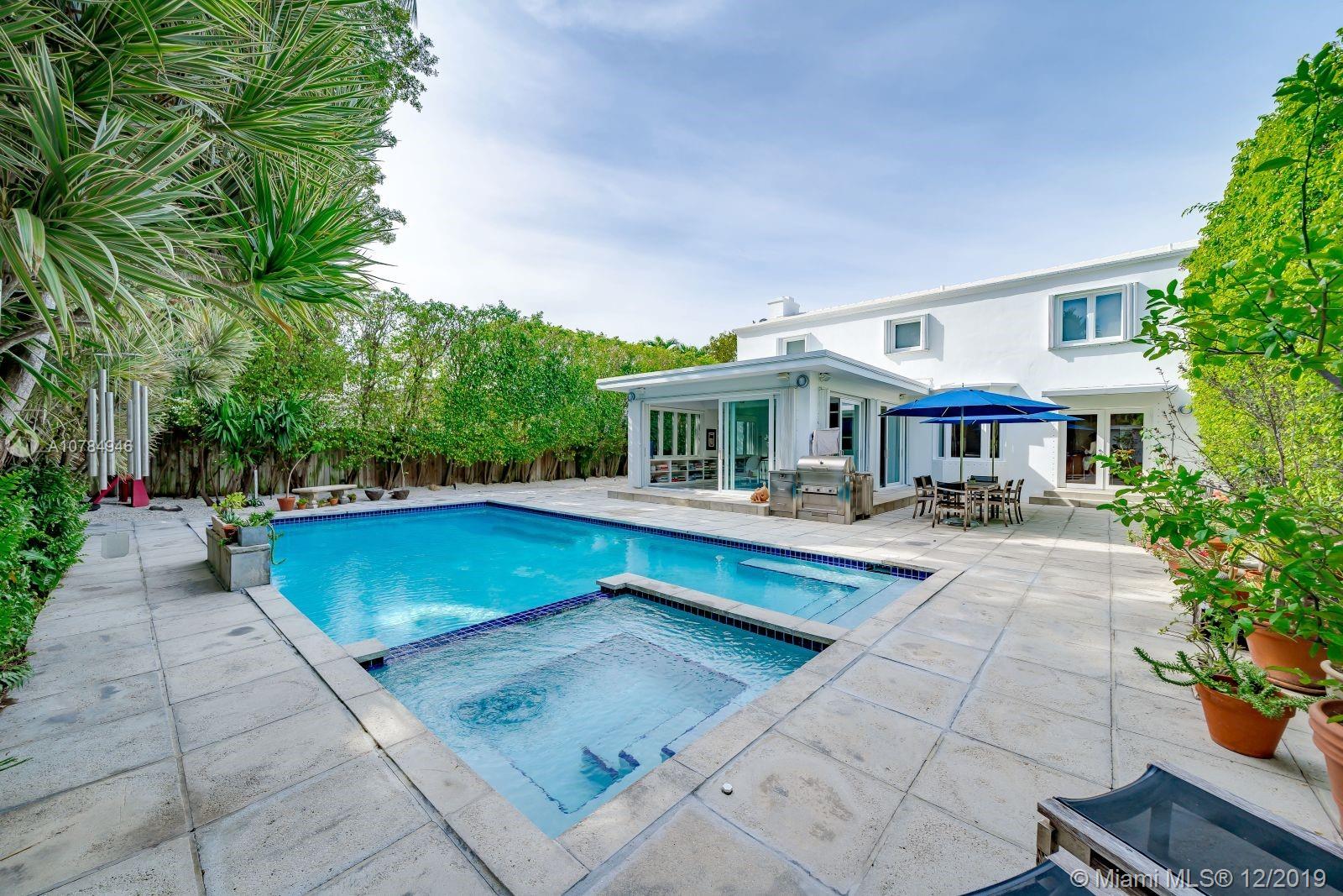Hidden genius on sought after N Bay Road. Live fun! indoors and out in this 4 bedroom, 3 ½ bath - one of a kind home. The cool modern simplicity of the large pool with hot tub, sheer descent water feature and beautifully landscaped patio/pool deck area feels timeless and fresh. There is an outdoor stainless steel barbecue grill and a pool/storage house. This sunny, all PGT hurricane impact glass house with its feel good family room invites you to enjoy each and every fine day. Top of the line chef’s kitchen, formal dining room, fireplace in living room and full laundry room with storage. The oversized master has a large terrace for endless sunset viewing. Full house generator and 2-car canopy.