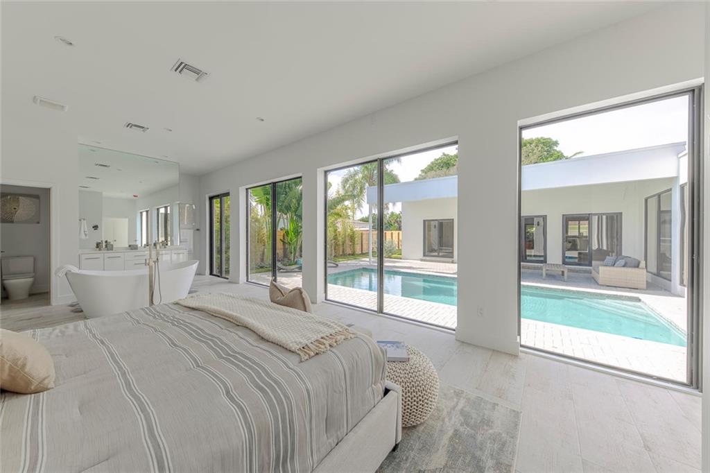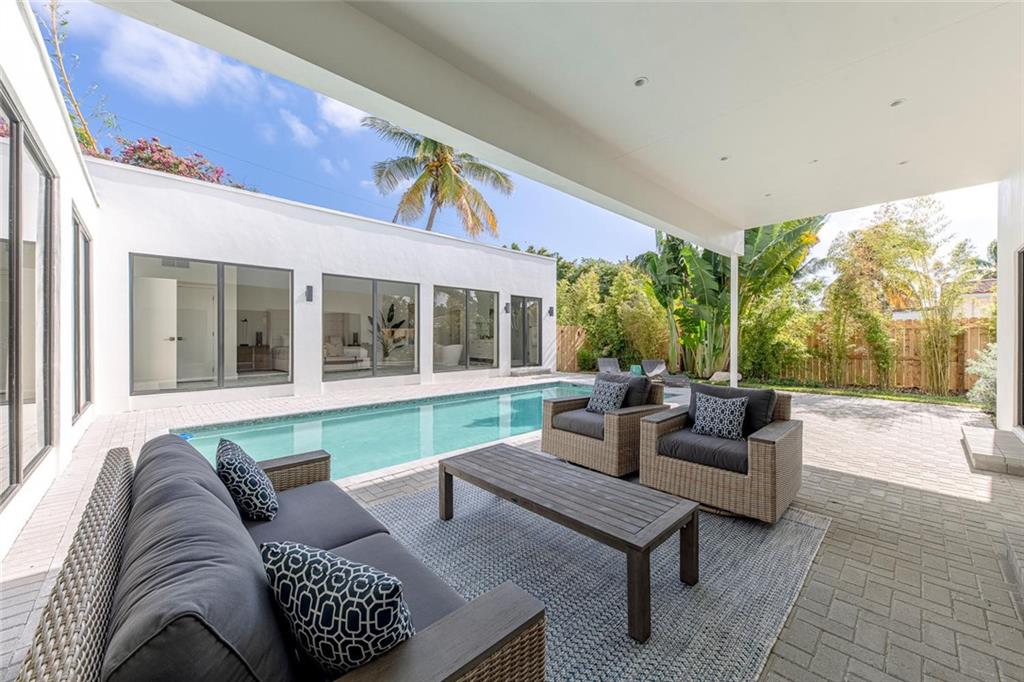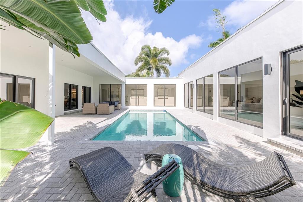 Newly completed high tech and high style on an existing foundation. Rebuilt and expanded into a very cool courtyard style home in sought-after Poinsettia Heights. With walls of glass, this very modern 3/3 home has a new quartz kitchen with a state of the art platinum package appliances including a smart-fridge with built-in information center, under cabinet windows and a huge center island. Each bedroom has a large closet and direct bath access. All rooms have recessed lighting. The open master suite has a free standing soaking tub, separate shower and dual vanity as well as a water closet. Two zones of a/c keep the climate comfortable and may be operated remotely. Outdoors an ample sundeck surrounds the pool with a large portion under roof for relaxed lounging and dining.