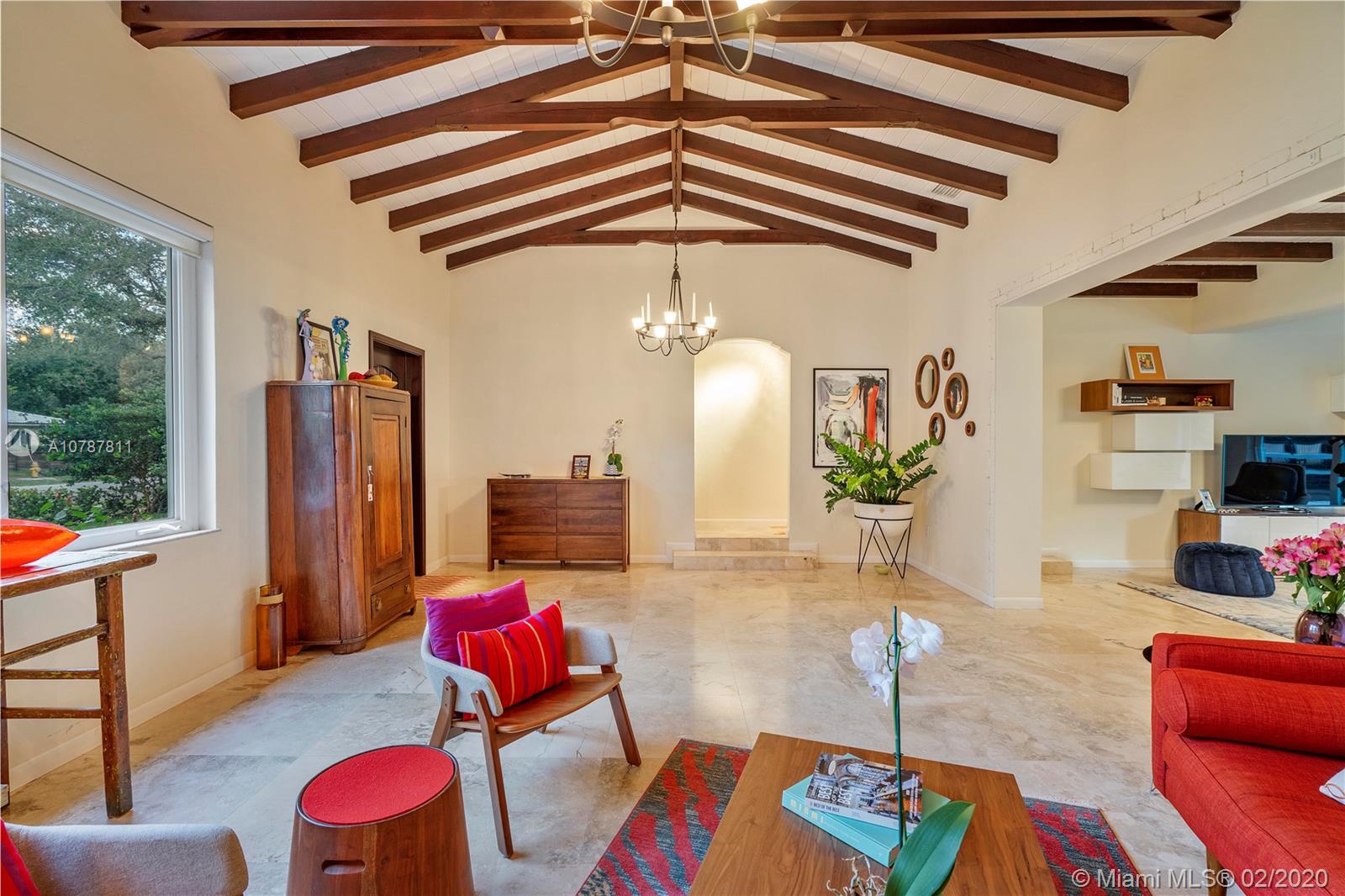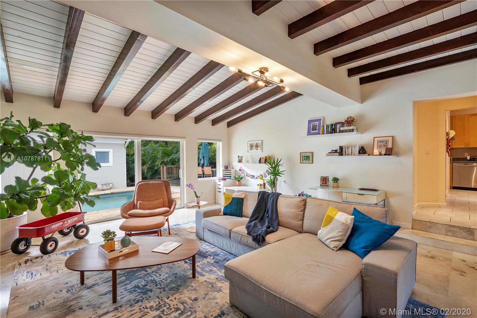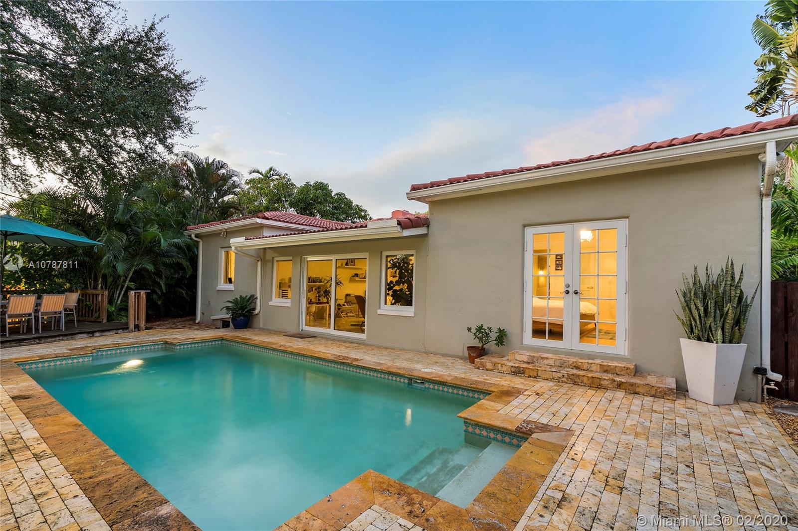 Amazing 1930’s updated Miami Shores pool home! Open and inviting spaces with soaring open beamed ceilings in the living room & family room. Tons of natural light throughout all spaces. Main house has 3 bedrooms & 3 updated bathrooms + pool cabana. Great family house ideal for entertaining. Master bedroom overlooks the pool & patio. No detailed was left un-turned w/ impact windows, beautiful renovated kitchen & new septic tank. Recently painted inside, new electrical & plumbing. Gorgeous pool home in prime location. A must see