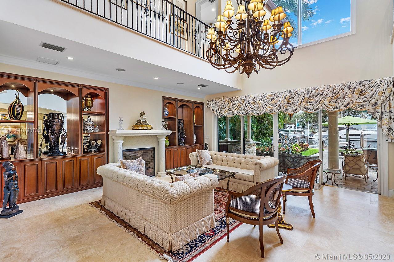 Las Olas - Navarro Isle - Downtown Fort Lauderdale, Waterfront Home.. This 2005 home is so well maintained that it looks new. The neutral open floor plan is great for entertaining or everyday living. FEATURES: Chef Kitchen w/ only the best appliances & ctr island w/ice maker, Walk-in Pantry, Volume Ceilings, Large Impact windows & Doors. Family Room, Living Room, Dining Rm, Brkft Room, Fireplace, Den(could be 5th bedroom), Elevator, Theatre room; 5 very large bedrooms upper level with walk-in closets, morning kitchens, open seating area, Security Sys., 3 level to roof deck, 2018 Roof; 4 zone A/C's 2015; Outside covered lanai retractable awning, with outdoor kitchen, Cabana Bath w/shower, sculptured yard, extra wide dock, new seawall 2005, boat lift all overlooking park across wide canal.