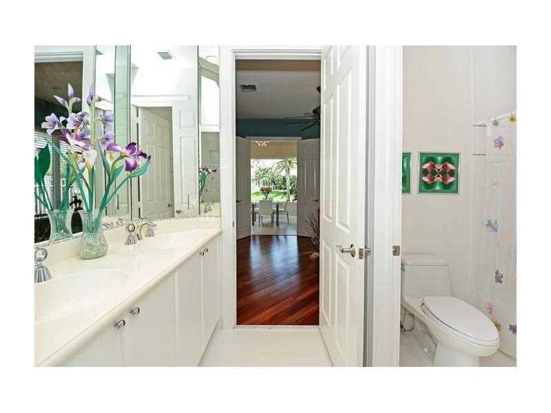 Take advantage of this rare opportunity!This stunning 1 stry custom home w/its light, bright & airy great rm features 4bd/3bths & 180 degree water & fountain vws*Sleek contemporary kthn,new dbl ovens & exotic granite counters*Porcelain flrs in all main ar eas & hardwd in master & guest ste*Master has w/in closets w/built in cabinetry,master bth w/spa tub,2 person shower & walled outdr shower-great for outdoor massage*Accordion shutters,interior & exterior speakers & lush landscaping make this a must see!