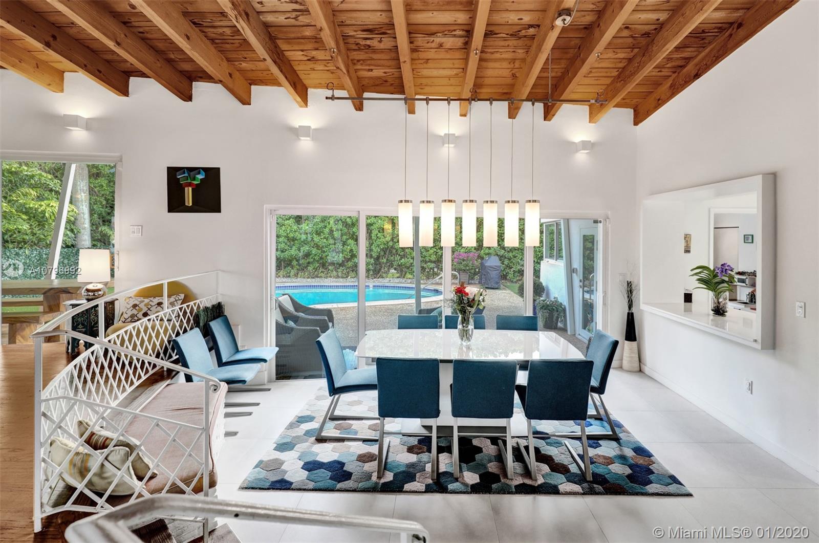 This one of a kind architectural gem is located in east Miami Shores only one house from the bay. Designed by mid century architect Robert Nordin, it boasts an impressive exposed Pine wood ceiling over a spacious living area overlooking the inviting backyard and pool. The traditional use of wood blends beautifully with modern finishes. A 1950's original working fire place adds to the mid century authenticity. Fully renovated in 2016 it has new impact windows/doors, new plumbing/electric, new roof, custom lighting, Bandalux window treatments, a high end kitchen w/custom cabinetry, Bosch appls. plus laundry room. The sumptuous master bedroom offers his/hers baths and a custom walk-in closet. A covered 2 car garage and plenty of storage space abound. This home is a must see and a great value!