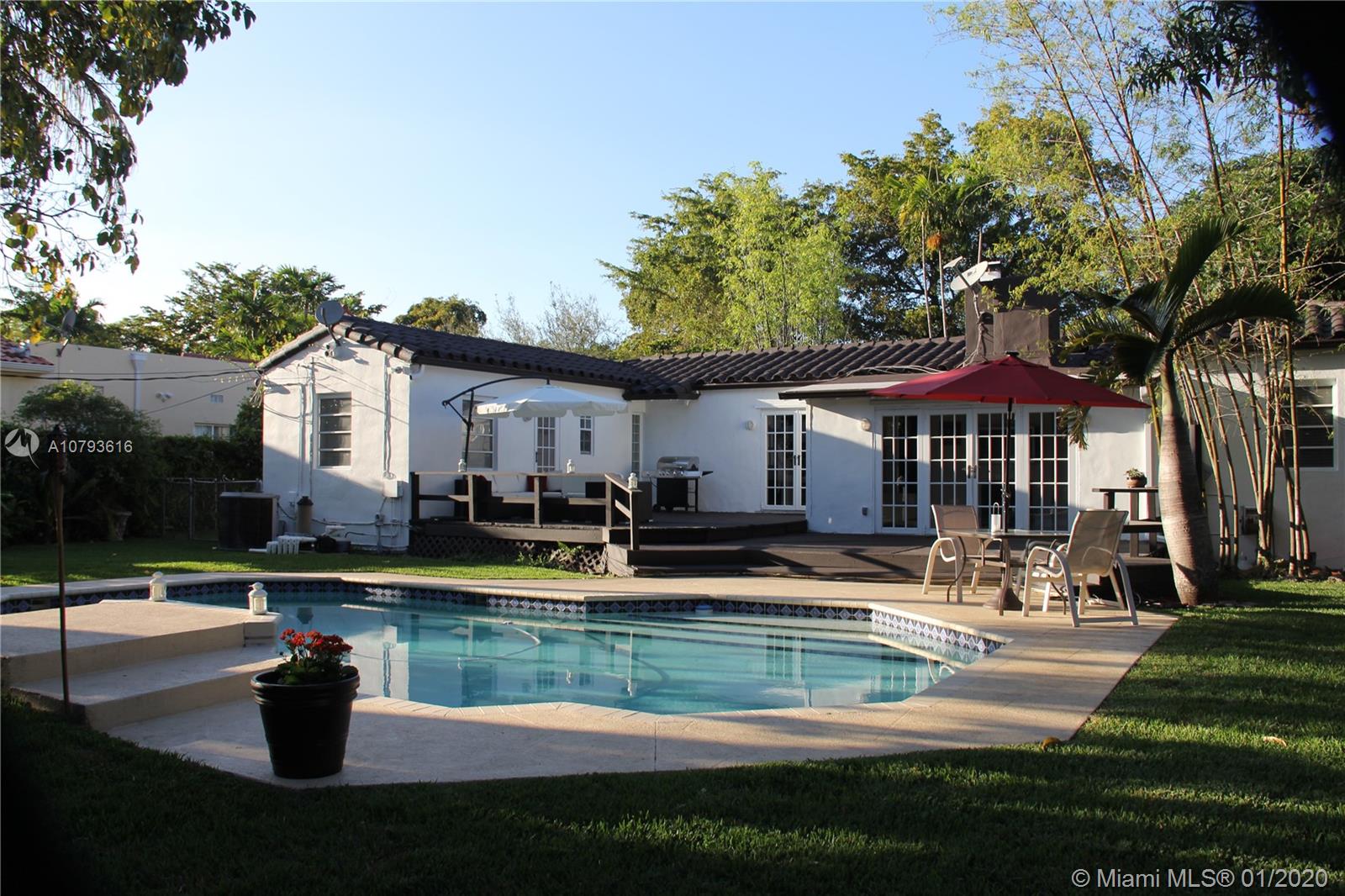 GORGEOUS HOUSE AT CORAL GABLES. 3 BEDROOMS, 2 FULL BATHROOMS, FAMILY ROOM, STUDIO. CREAM IVORY MARBLE. SPLIT FLOOR PLAN. LOCATE ON A DOUBLE LOT OF 11,875 SQF AND A ONE BLOCK STREET WITH LOW TRAFFIC. BIG POOL WITH A LARGE OUTDOOR WOODEN DECK SPACE. LOTS OF LUSH LANDSCAPING ALLOW FOR PRIVACY. CLOSE TO COUNTRY PRADO STREET. MODERN KITCHEN ITALIAN CABINETRY, QUARZO COUNTER TOPS, STAINLESS STEEL APPLIANCES. WOOD BURNING FIRE PLACE. STORAGE SPACE IN THE ATTIC. FRESHLY PAINTED INSIDE & OUT. ADT ALARM SYSTEM, SPRINKLES SYSTEM, MOSQUITO SYSTEM AND POOL FENCE. SCHOOL: CORAL GABLES PREPARATORY ACADEMY. CLOSE TO SUNSET SCHOOL 4.5 MILES 20 MINUTES. PUBLIX LOCATED 5 MINUTES WALK.