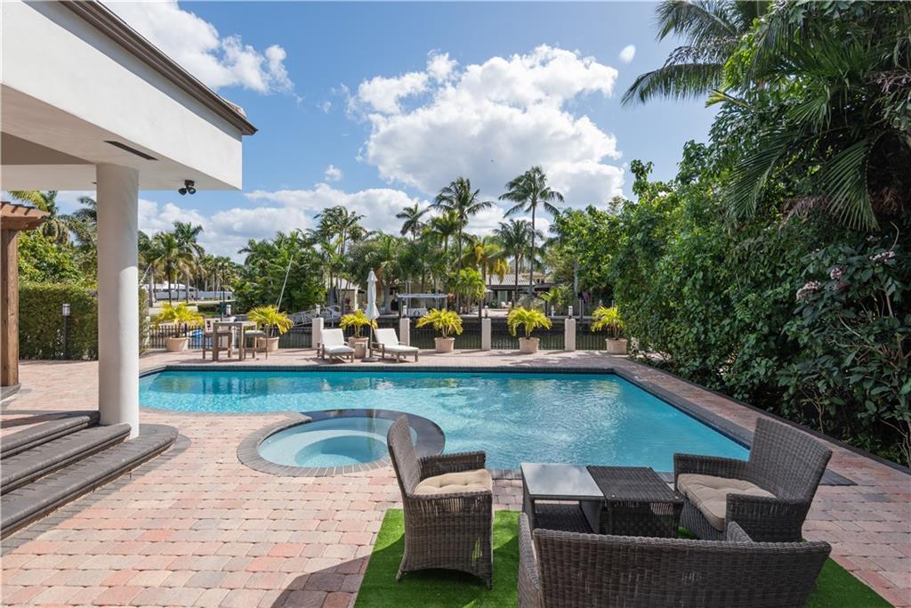 Newly updated one story Las Olas Isle home with 100' of water and an east facing backyard. A stunning double door glass entrance welcomes you into your open living area with walls of glass to enjoy the pool and water views from most rooms. This 4 bedroom + den, 5 bath home is complete with a new gourmet kitchen, updated bathrooms and impact windows and doors. The luxurious master bedroom and bath has two generous sized closets and direct access to the pool area which has a large covered lanai for outside entertainment space. Walking distance to the Shops and Restaurants on Las Olas Blvd and close proximity to the Beach. Private dock with no fixed bridges and ocean access.