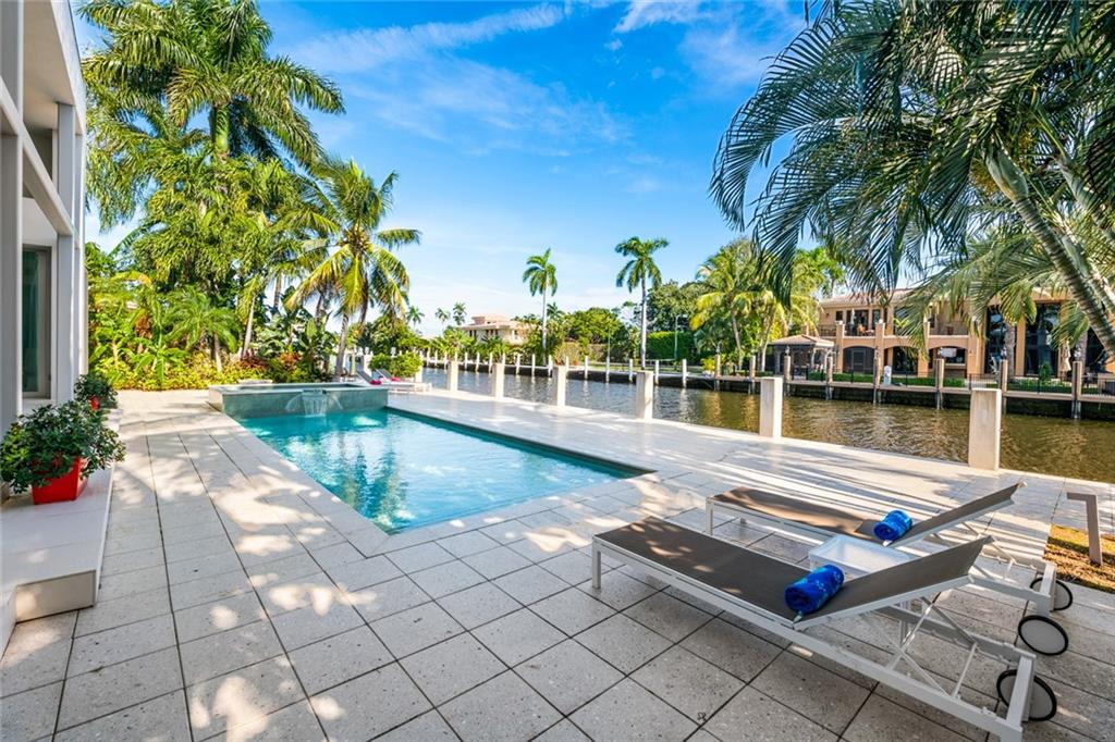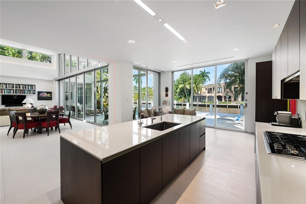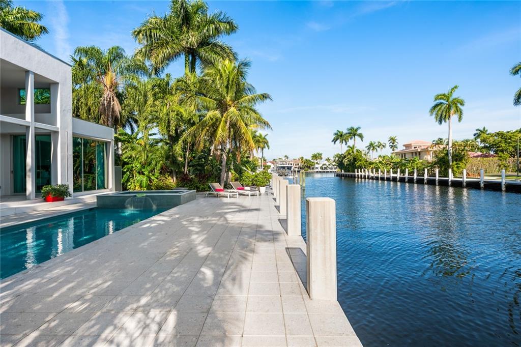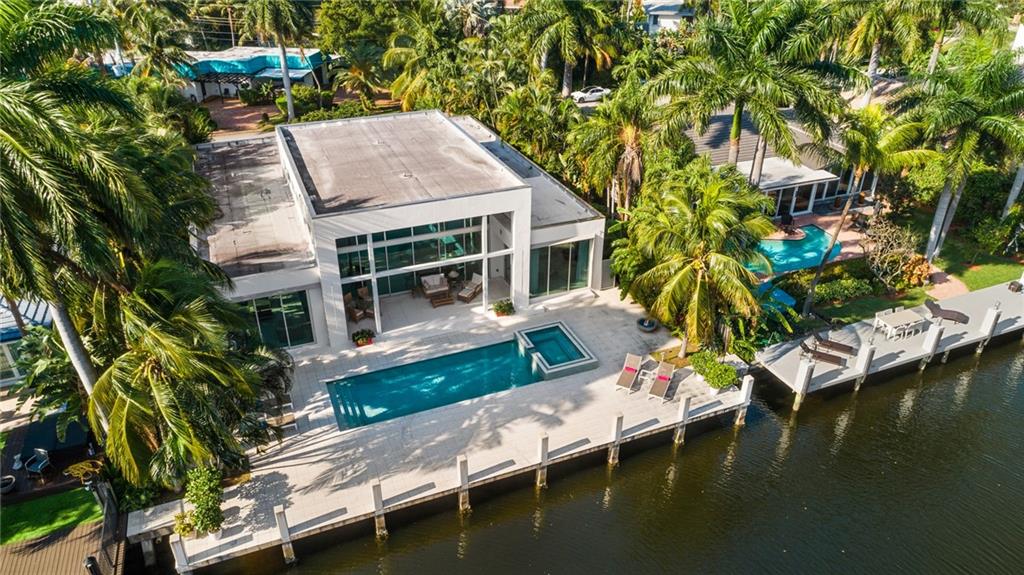 Prepare to live a life of sophisticated luxury surrounded by revolutionary architecture inspired by an ultra-modern design. This deep waterfront estate is ideal for boating boasting a concrete dock, wide canal & no fixed bridges to the Intracoastal & Ocean. The luminous open floor plan, soaring ceilings & walls of glass are conducive to today's lifestyle. The custom culinary kitchen features a large center island, upgraded appliances, gas cooktop, 78 bottle wine cooler & tremendous storage. Multiple stacking doorways integrate indoor & outdoor living spaces that overlook the heated pool, spa & tropical waterway. Additional details included: 2 tankless gas water heaters, whole house water filter, Creston & sound systems, motorized window treatments, back-up generator. Sq Ft from IMAPP.