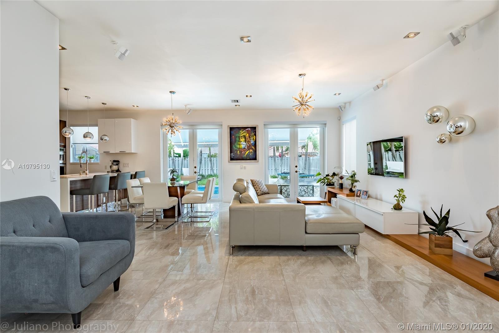 Substantially remodeled and modern single family house available now for sale! enjoy state-of-the-art 100% Italian kitchen (Stosa) with Absolute White Quartz, 42" cabinetry, all Kitchen Aid appliances including a wine cellar for 30+ bottles. High-end finishes such as Spaniard 24x24 porcelain, all LED bulbs, impact french doors, bathrooms completely renovated, modern laminated wood floors upstairs. Enjoy the Florida weather with a splash in the pool or just chill out during the winter season under the patio awning. The garage was totally upgraded and can be easily used as a playroom, office, or leave it as a garage. Very family friendly gated community, walking distance to Eagle Pt Elementary, community has updated the playground and pool. There is no other house in Weston like this one!