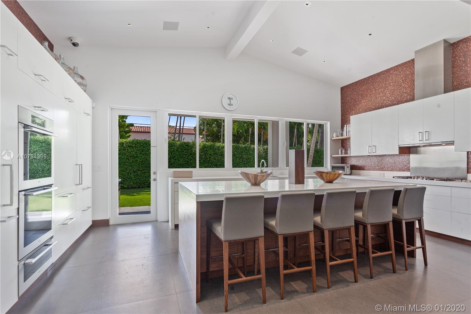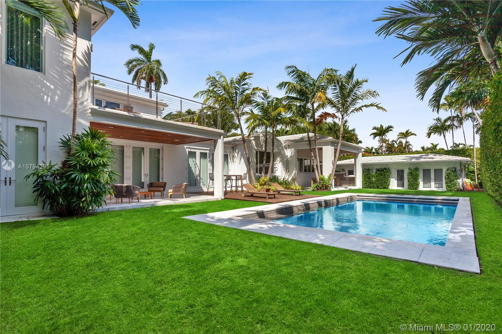 Fully remodeled 2-story gated home with detached guest house situated on a double lot on prestigious North Bay Road in Miami Beach. Smart home with Savant system, Lutron lighting, hurricane-impact windows & whole-home generator. Main House features 5 bedrooms, 4.5 bathrooms, custom Henrybuilt eat-in kitchen with chef's island & Miele appliances, formal living room with cathedral-beamed wood ceilings, formal dining room, theater, executive office & spacious master suite with terrace & spa-like bathroom with Jacuzzi tub & glass shower. Guest House offers 2 bedrooms, bathroom & kitchenette. Expansive backyard with manicured green space, covered patios, summer kitchen, dining & swimming pool with electric convertible cover. Private lush mini park for kids and/or pets & 2-car attached garage.