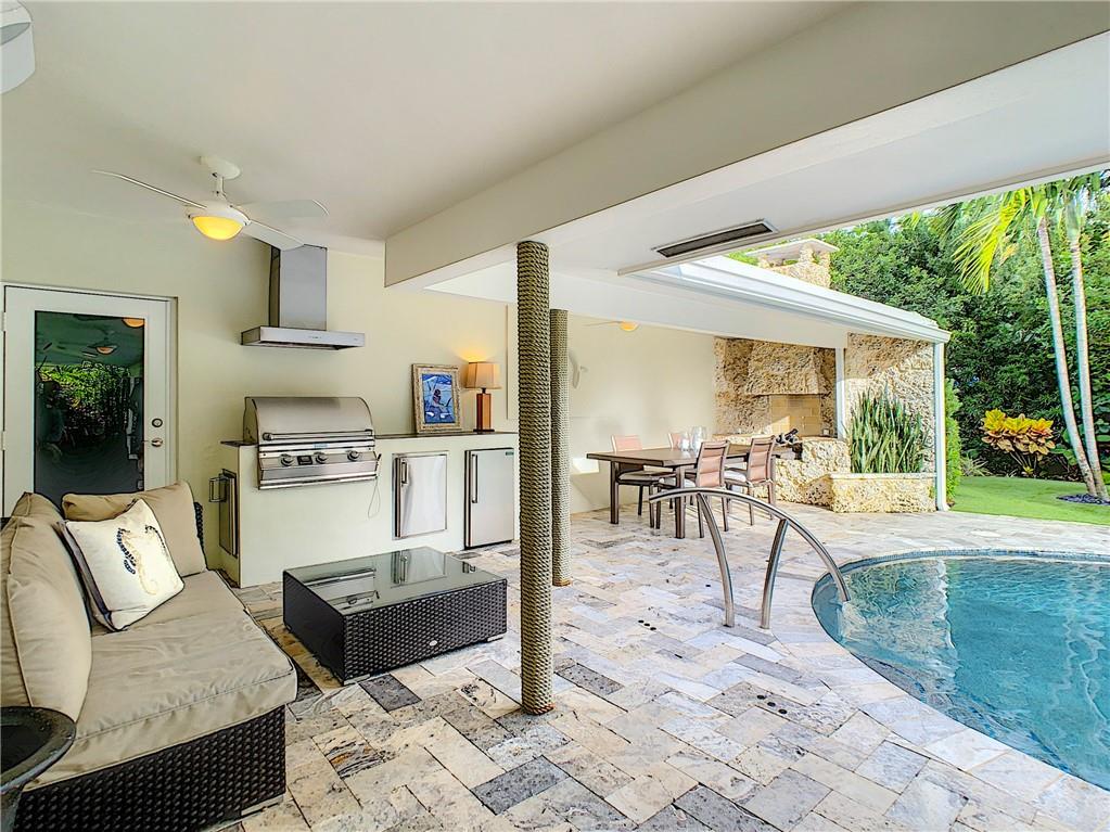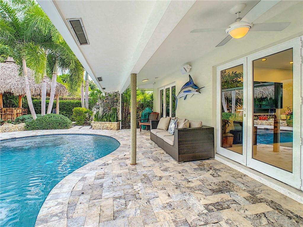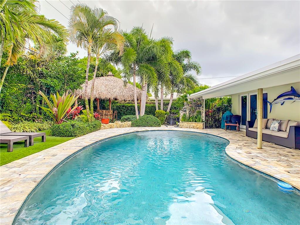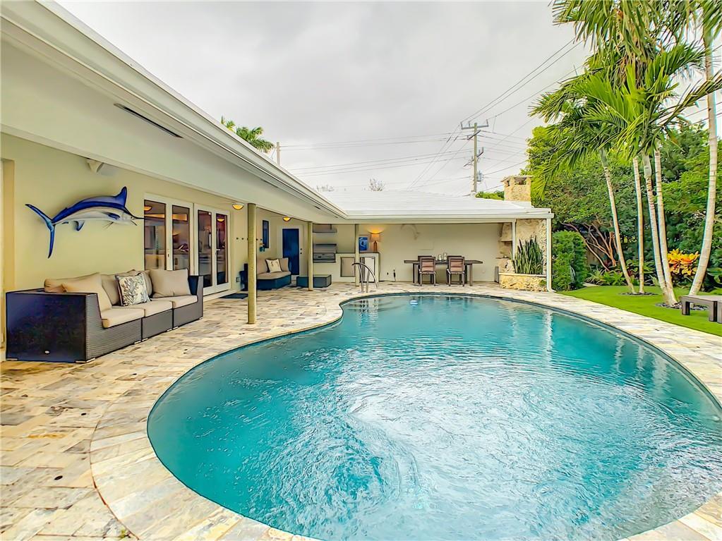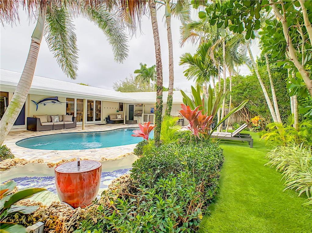 Impeccably remodeled home overlooking a luxurious pool and entertaining area. Located on a beautifully landscaped oversized corner lot on one of the best streets in Coral Ridge County Club Estates. The improvements are too many to list but include impact windows & doors, new front door, new garage door, 20KW Onan generator, Trane Variable Speed Compressor A/C, new A/C duct work, porcelain floors throughout, large master bath, stainless appliances, new washer & dryer, plantation shutters, heated saltwater pool, hot tub, tiki, upgraded electrical panel, tankless hot water heater, artificial grass in backyard, outdoor kitchen, LED lighting, outdoor fireplace, epoxy floors in garage with cabinets, pool fence, media closet, remote access exterior cameras, wifi boosters, landscape lighting...