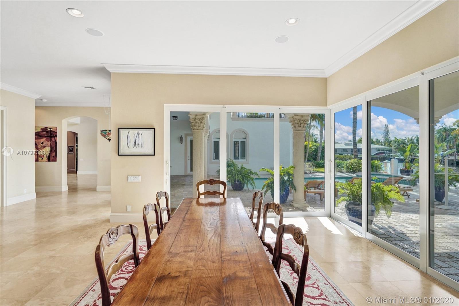 MAGNIFICENT OCEAN ACCESS POOL HOME IN A HIDDEN POCKET OF EAST FORT LAUDERDALE CALLED "THE LANDINGS." This custom built home with soaring high ceilings and panoramic water views is nothing short of impressive! 5 bedrooms/5 baths(2/2 downstairs and 3/3 upstairs)Enough room for the family, guests, and the Gatspy party! This one has it all including all impact windows and doors, Wolf Appliances, Marble counters and floors throughout, outdoor kitchen, 85 Ft of water front, full home generator, elevator, theater room, boat lift, covered loggia & private balconies add to this fine estate. Exceptional location for boaters as the canal is 140 FT wide and on a dead end perfect for turning any size vessel...and its 1 minute from Intracoastal and 0 boat traffic!!Literally a Steal!Fit a 75FT Yacht!