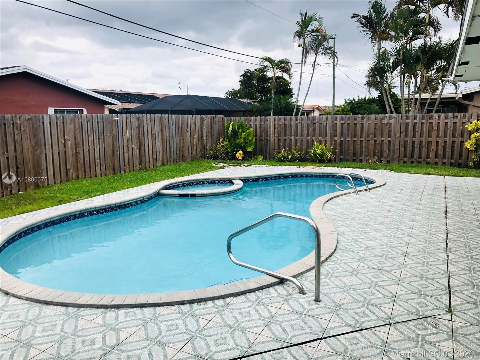 MLS Brokers is proud to present this Charming Pool House in Sunrise FL! This beautiful one-story home features a Flow-Through Kitchen with updated cabinets and Granite Countertops, Gas Range, Tile throughout, updated bathrooms, beautiful Pool and jacuzzi, completely Fenced in Yard, attached Garage and Circular Driveway! Quiet neighborhood near shopping plazas, recreational park, and quick access to major highways. This is a MUST SEE! Bring your clients for a showing and submit your offers! Easy to show.