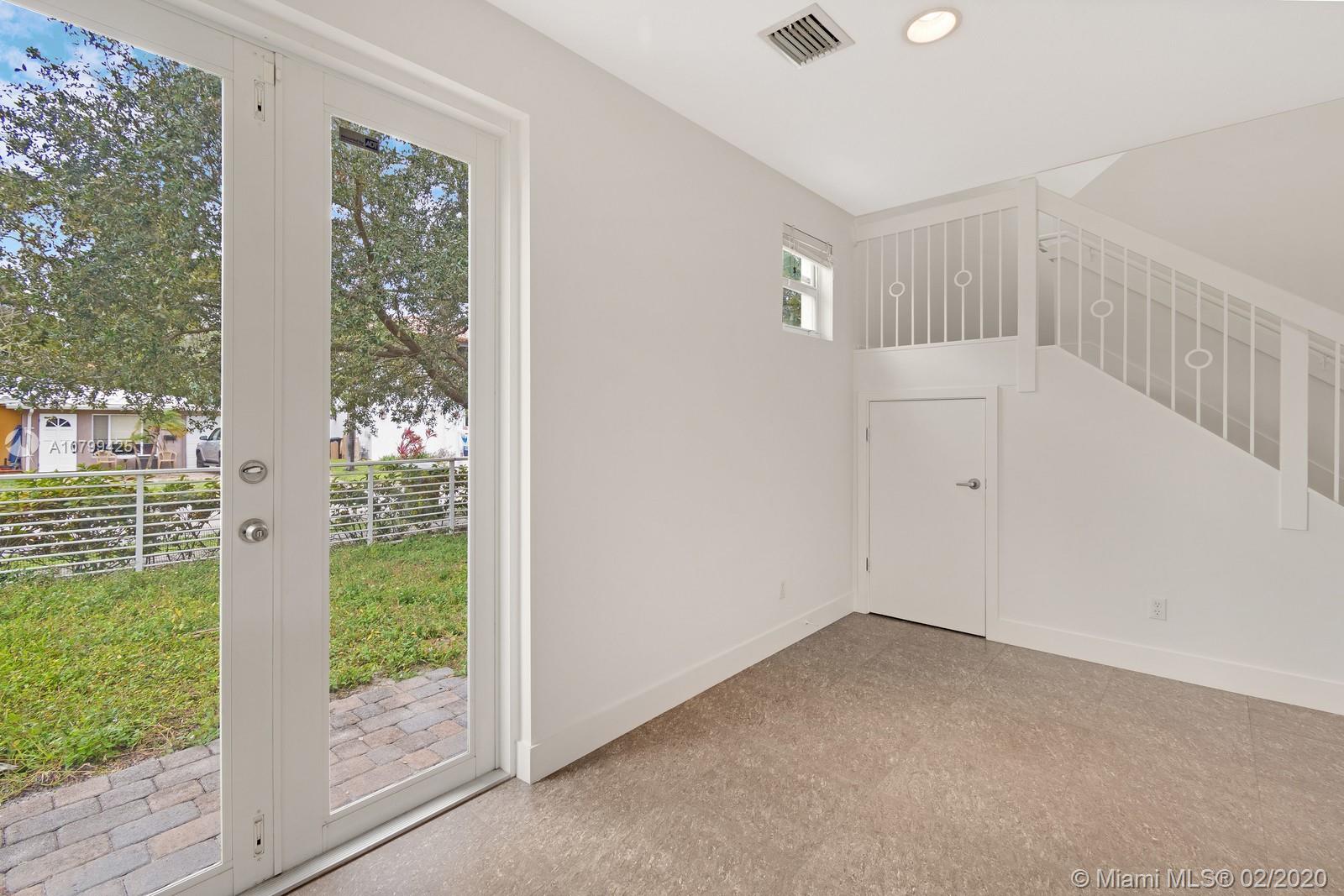Drastically reduced!!!High ceilings, all impact windows & doors. This 3BR/3BA home boasts 3-levels of contemporary interiors with a fenced courtyard entry, two bay garage and a third level terrace. First floor offers a third guest suite plus a roomy loft/den area and access to side yard. Second level features living, dining and kitchen area plus a second bedroom and a full bathroom. Entire third level is master suite with a private grand terrace, generous walk in closet, built ins with shelves and drawers. NO HOA, FEE SIMPLE. Amazing location – close to the beach, galleria mall & downtown!