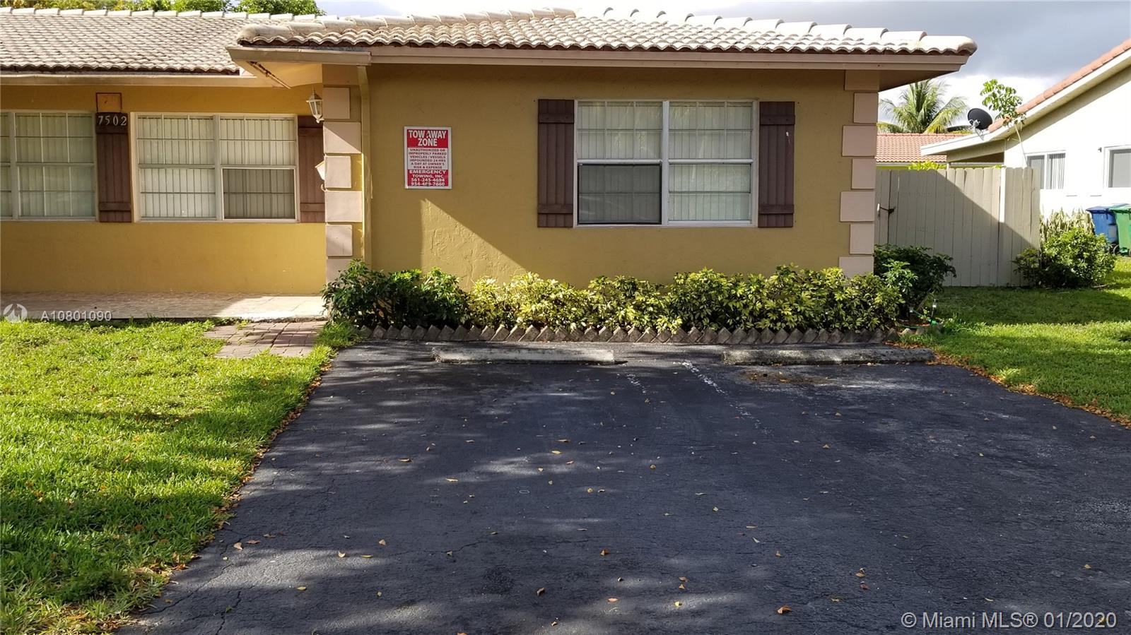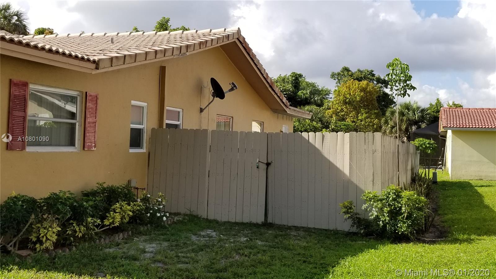 HOME OWNERS : A beautiful, spacious, bright, home located in desirable Coral Springs neighborhood. Enjoy all the conveniences of a friendly family & pet friendly neighborhood, great schools, a spacious bright and freshly painted 1521 sqft 3/2 home, new appliances, a separate laundry room, huge backyard, inviting porch at the front, gated backyard for parking your boat, RV, or trailer, and much more. Lots of potential! NOTE: It is a HALF-DUPLEX / VILLA without HOA. INVESTORS : Occupied by responsible tenant @ $1700/m - tenant pays for all utilities - you just pay taxes.