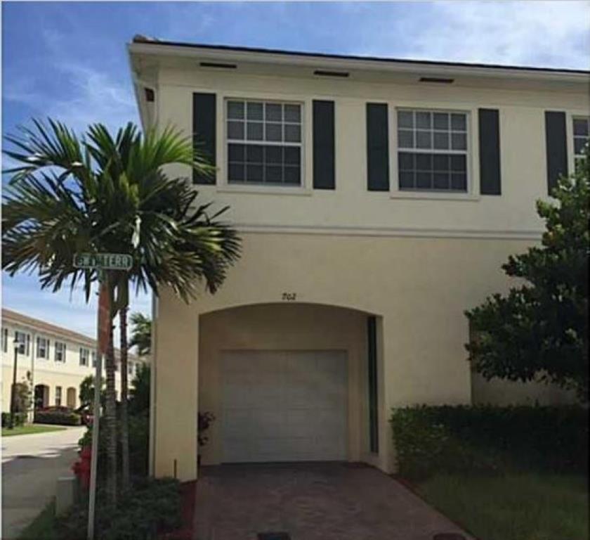 Beautiful corner unit townhouse, like new with amazing upgrades. This 3 bedroom, 2.5 bathroom property features open spaces, unique stone wall covers on the main living areas, upgraded faucets in the kitchen, master suite and guest bathroom, upgraded upstairs flooring, granite counters & backsplash, stainless steel appliances, updated master bath, 1 car garage and more. Less than 3 miles from the beach! HOA fee includes cable, internet, ADT, exterior maintenance.