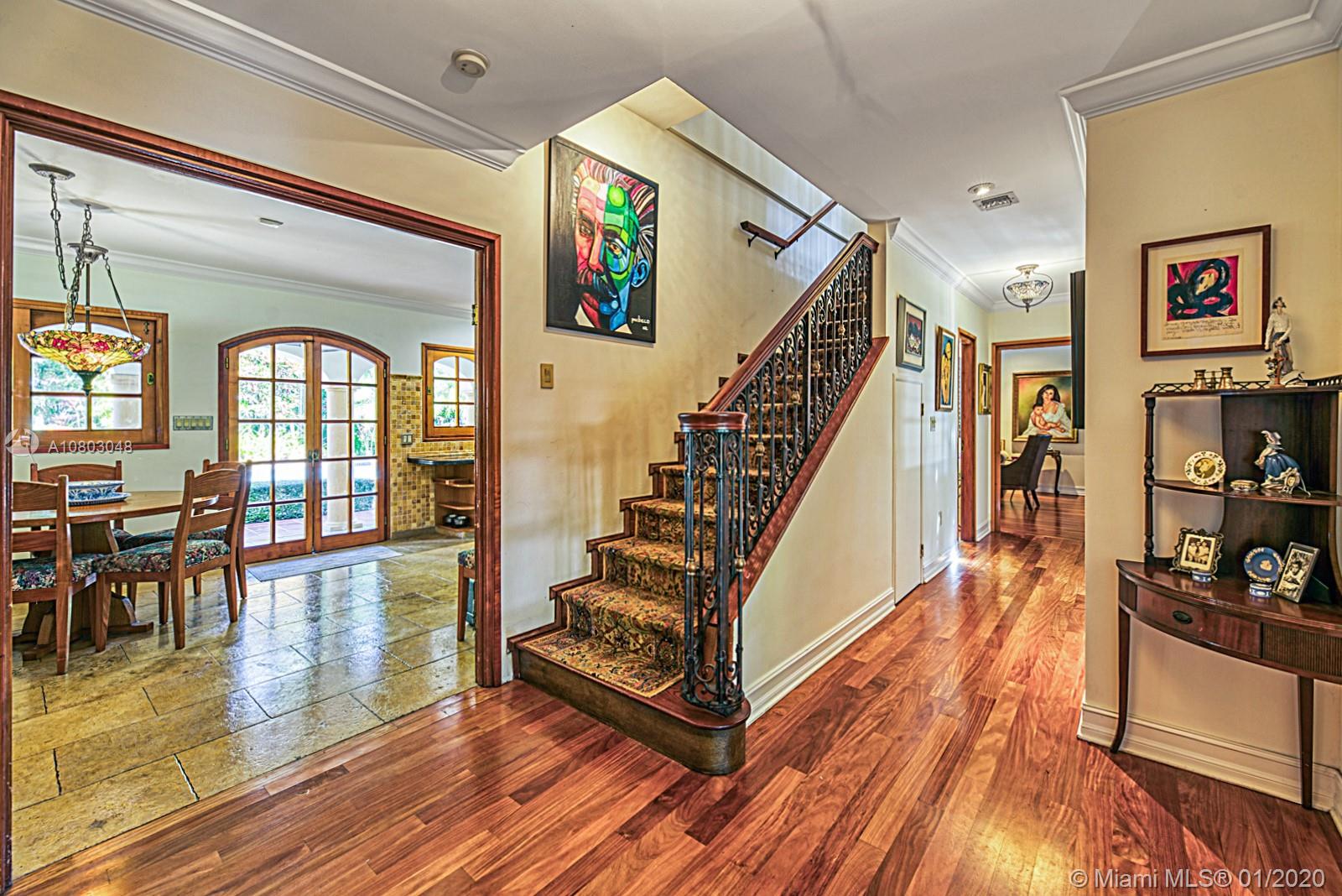 Breathtaking Coral Gables estate on rare double lot situated on a quiet tree-lined street walking distance to Merrick Park! Custom built in 1991 boasting 4,300 Total-square-feet and a resort-like backyard with a heated waterfall pool, summer kitchen, cabana bath & authentic Argentinian BBQ! This estate exudes a rich tradition with Mahagony wood windows & doors along with iron fixtures imported from Argentina. Spacious master bedroom with large marble shower, bathtub, dual vanities and a large wraparound balcony overlooking a lush backyard. Updated kitchen with granite counters, new refrigerator & gas range w/ hood. Two rooms and full-bath not accessible to the main house which can serve as an in-law suite or home office. This area of Coral Gables is only going to appreciate!