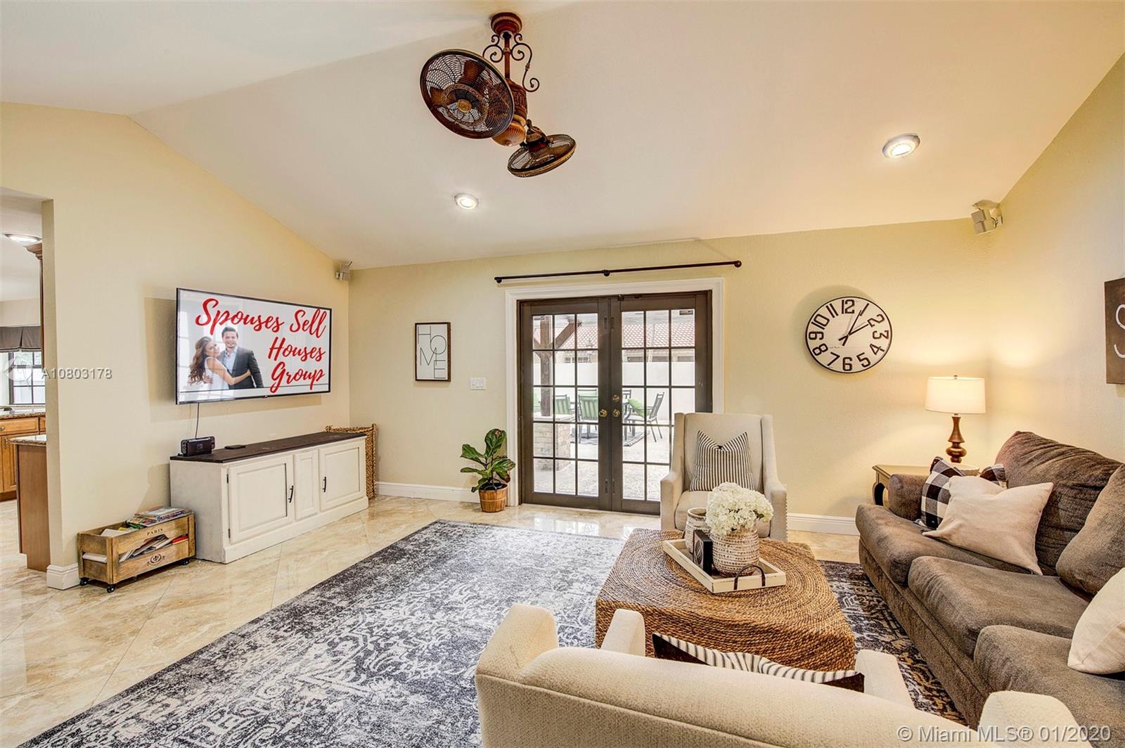 Step inside this ONE OF A KIND spectacular 5 bedroom 3 bathroom home with a pool sits on an oversized pie shaped lot at the center of a private cul-de-sac! Custom designed home that offers a split floor plan (in law living quarters with own bathroom), Specially designed indoor and outdoor gorgeous brick fireplaces. NEW ROOF, HURRICANE IMPACT WINDOWS, BRAND NEW AC/AIR DUCTS, BRAND NEW SOLAR PANEL/POOL PUMP AND CHILD SAFETY GATE, 24X24 Porcelain tile flooring, NEW ENGINEERED WOOD FLOORING in rooms, BRAND NEW WATER HEATER. CUSTOM BUILT Wet Bar! Master Bath/2nd bathroom all redone. 2 car garage, NEW landscaping + fencing, SURROUND SOUND SPEAKER INDOOR AND OUTDOOR, SMART HOME (RING DOOR BELL/SMART SWITCHES/ 24/7 Camera surveillance), Two separate oversized yards! OVER $200,000 in upgrades!!