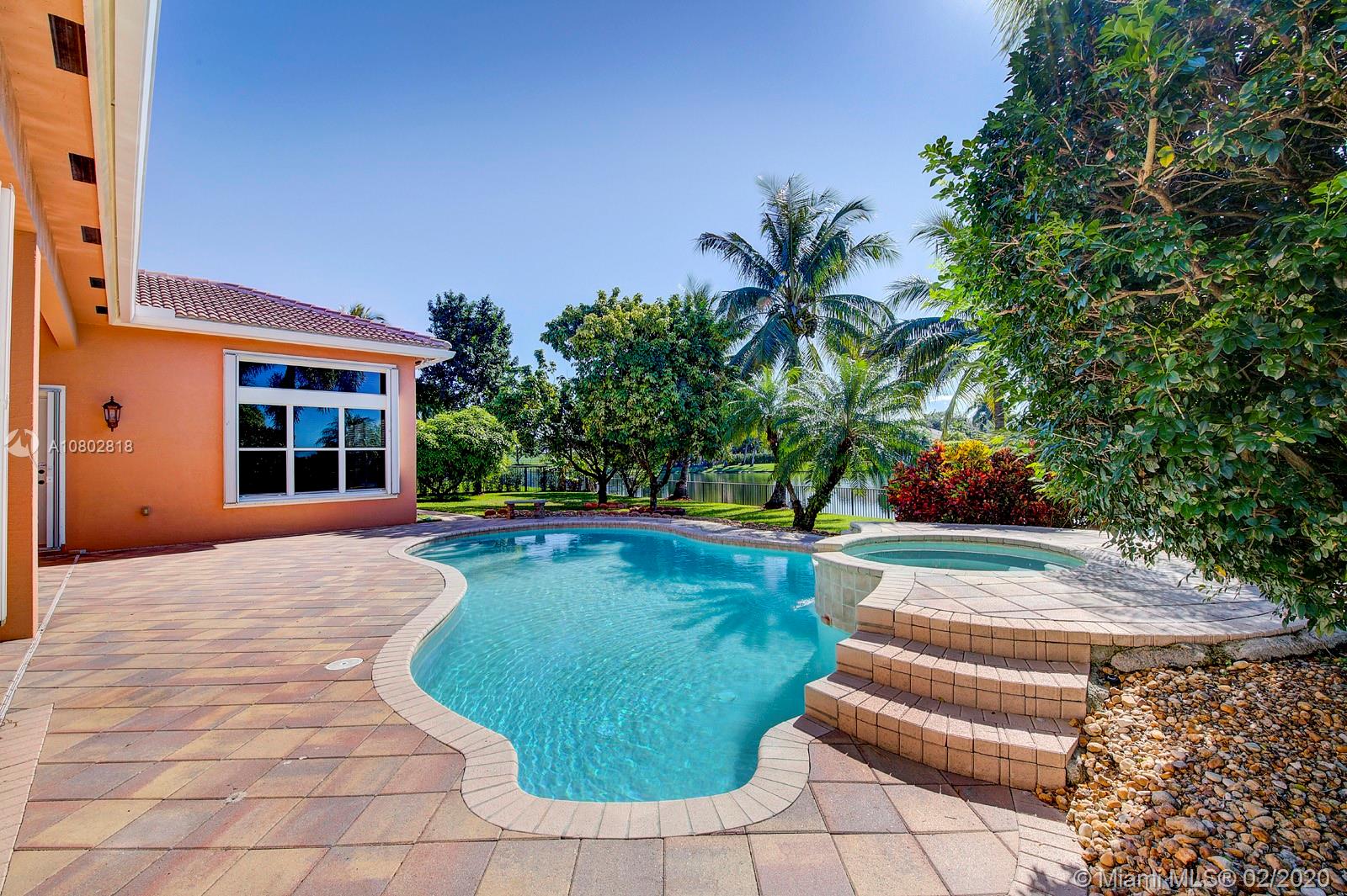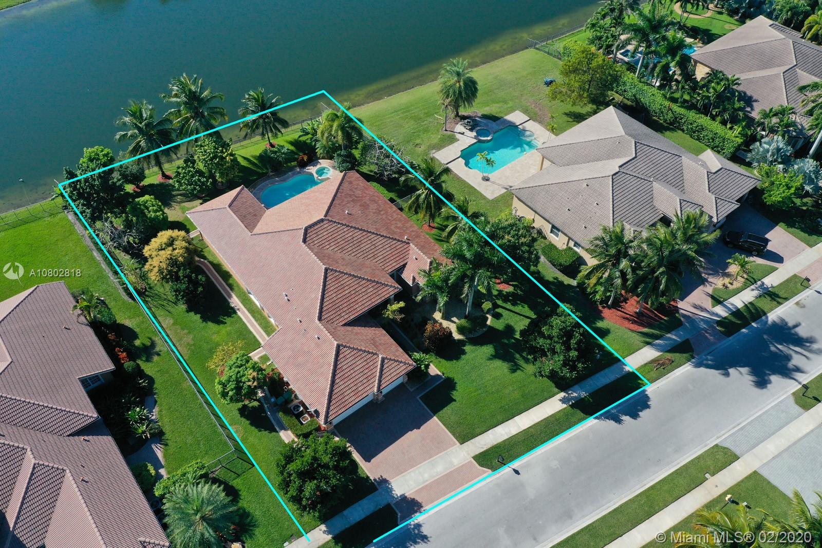 Exquisitely maintained residence located in one of Davie’s most sought after 24/7 guard gated communities! Priced to SELL!! **BRAND NEW $64k ROOF & GUTTERS** Sky high ceilings. Bamboo wood floors in all bedrooms; diagonally laid tiles throughout the living areas. 5th bedroom can be den/office. New TOP OF LINE stainless steel appliances including ceramic top induction range and a Bosch dishwasher. Newer AC. Lushly landscaped fully fenced builders acre. *Accordion shutters* 21 exotic tropical fruit trees for year round enjoyment. Trees include Mangoes, Avocados, Plum, Orange, Sugar Apple, Lychee, Longan, Ackee & Barbados Cherry. Serene lake view from the large covered patio & heated pool w/spa waterfall. Community offers tennis courts; basketball court; tot lots, park, pavilion & restrooms.