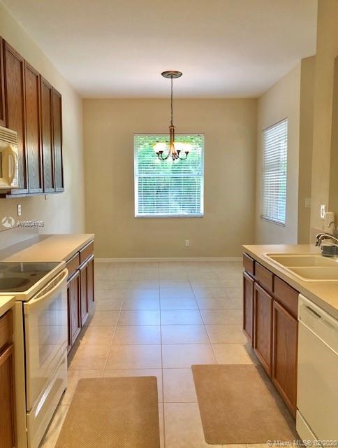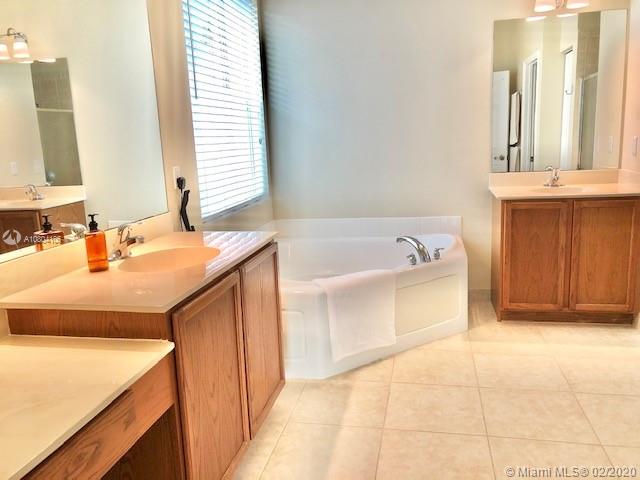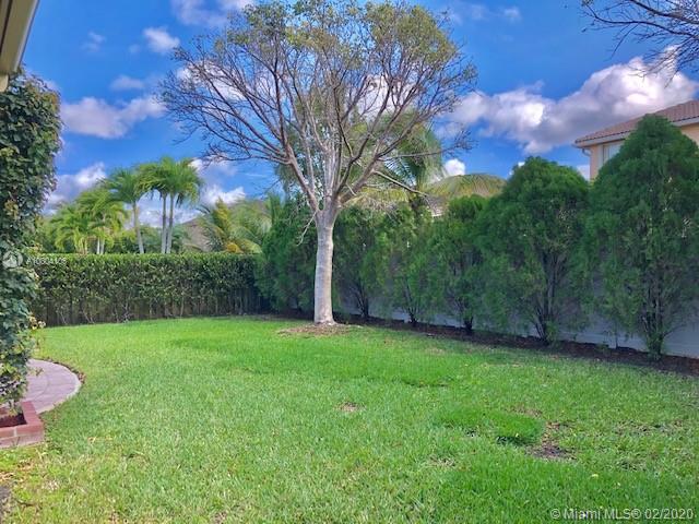 Tucked on a quiet cul de sac in The Isles at Weston, a gated community with state of the art Community Center, recently updated including heated community pool, kiddie pool, exercise room, basketball courts, playground, gazebo and more. This spacious one story is neutral and ready for immediate occupancy. Double split floor plan with spacious master bedroom, 9 foot ceilings throughout.Stone look tiles flow throughout the home. Wood cabinetry in kitchen with sunny breakfast nook. Sliders to private partially fenced and hedged yard with expanded paver patio with overhang and room for a pool. Master bath with roman tub, dual sinks and shower. Beautiful curb appeal with paver driveway and bougenvilla. Walk to elementary, middle and high school.