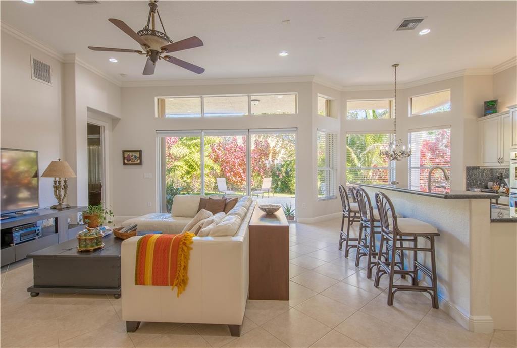 Bright and spacious one-story home. Upgraded kitchen with granite countertops, SS appliances, tile throughout the entire house, new A/C units, impact front door and windows, accordion shutters the rest of the house, lushly landscaping with fruit trees and travertine pavers.