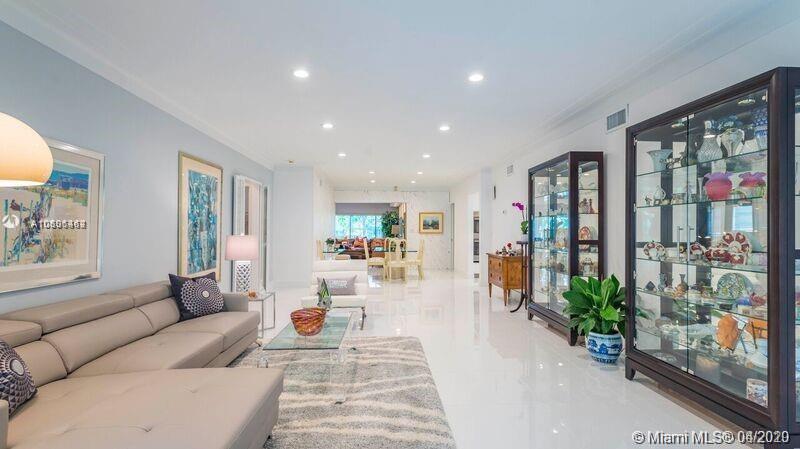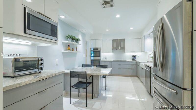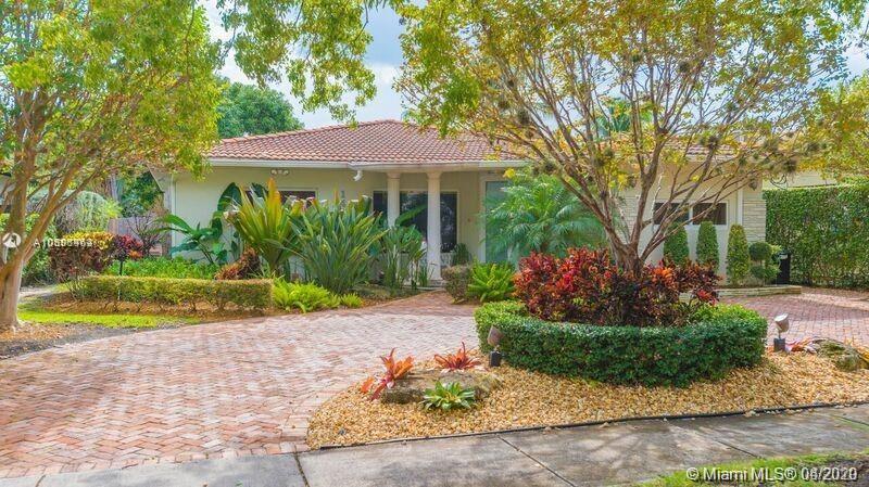 Waterfront gem minutes to intra-coastal waterway and ocean. Enter through the circular Chicago brick driveway and lush landscaped yard, to find an open and bright 3 bedroom/2 bath +office 2,645 sq. ft. floor plan. Nestled in the guarded community of Biscayne Point, it was remodeled in 2018 - upgrades include chef's kitchen with stainless appliances, quartz counters, double oven, tons of cabinet space, white gleaming porcelain tile in living areas, hurricane shutters, impact glass windows/doors, decorator paint, base boards, modern master bath with glass shower enclosure and floating vanity. All electric wiring has been replaced and updated to code. Relax on the water in a tropical paradise complemented by dock, a landscaped pool area and screened-in patio. A boat owner's dream.
