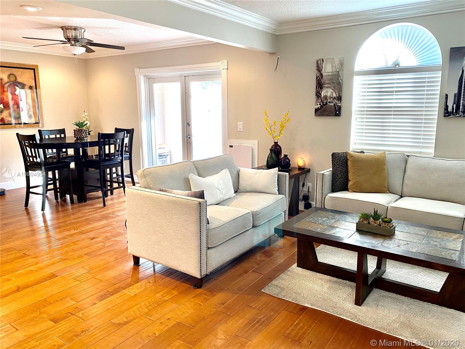 Must see! Impeccable, Beautiful and update corner townhouse. Many upgrades has been done for you. Wood floors throughout, granite kitchen, upgrades baseboards and crown moldings. Private and comfortable patio which open off the kitchen. This home is centrally located with easy access to I-75, Palmetto expressway, Florida Turnpike, shopping centers, parks, schools and dining. This is a well kept community, clean, lovely, safe and include a community pool and kids's play are. It won't last