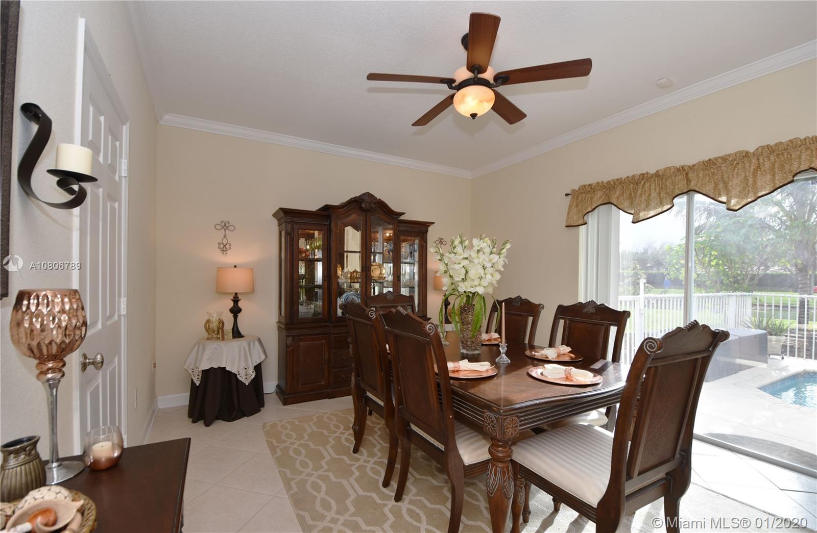 Beautiful Lakefront Pool Home in the Guard-Gated Community of Pembroke Isles features Crown Molding, Ceramic and Wood Floors, Granite Counters, Stainless Appliances, Nest Thermostat, Backup Generator Plug, Solar Heat Control Window Tints, Hot Water Heater replaced, AC System replaced to include UV Sanitizing Light, Ring Video Doorbell, resurfaced Diamond Brite Pool, Motion Sensing Backyard Lighting. Resort Style Neighborhood with Several Amenities. Master Bedroom features sitting room that can be converted back to 4th Bedroom. Gorgeous Serene Lake views, Large Backyard with Patio and Pool for Entertaining. Washer/Dryer and all Curtains do not convey.