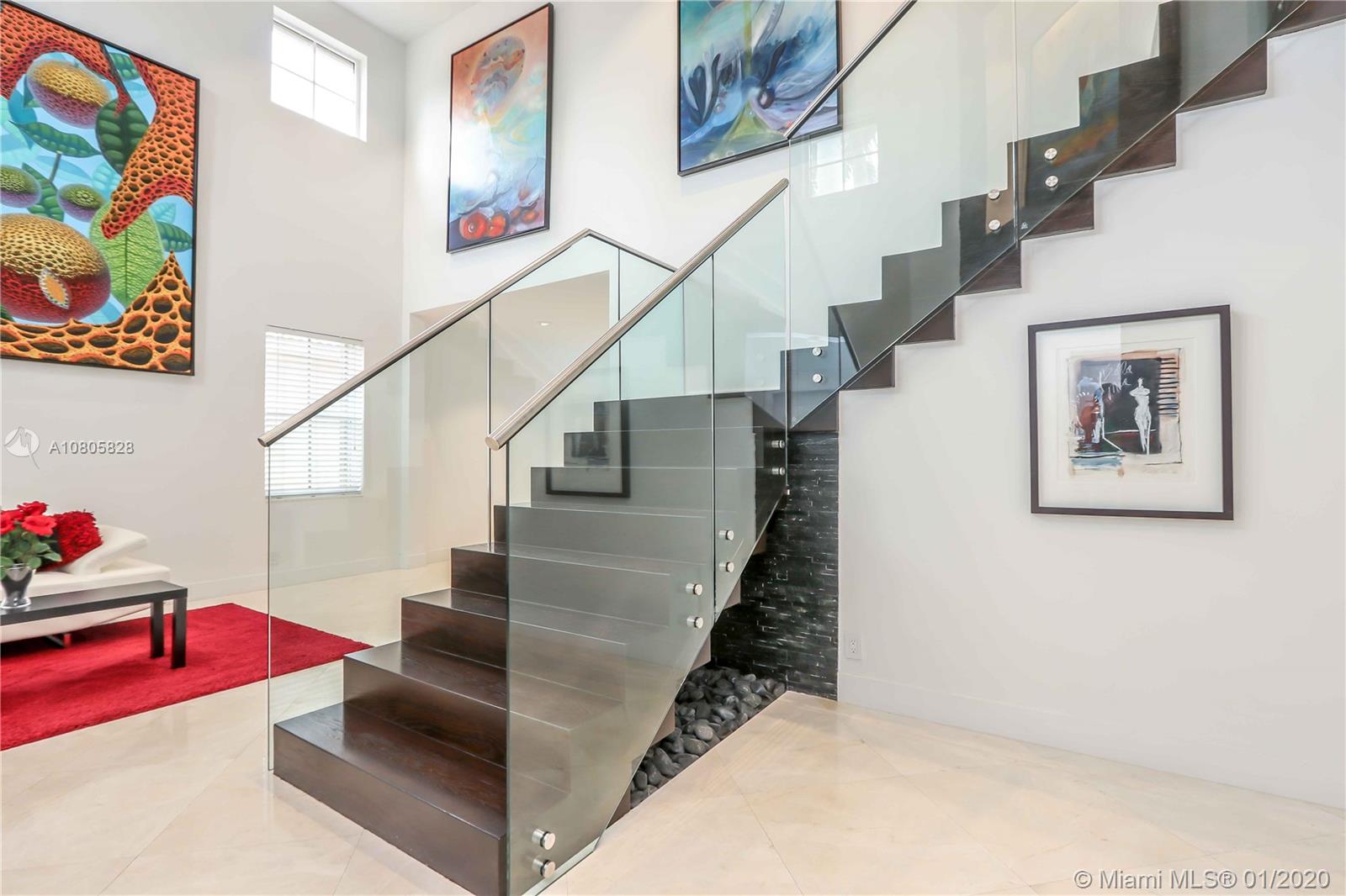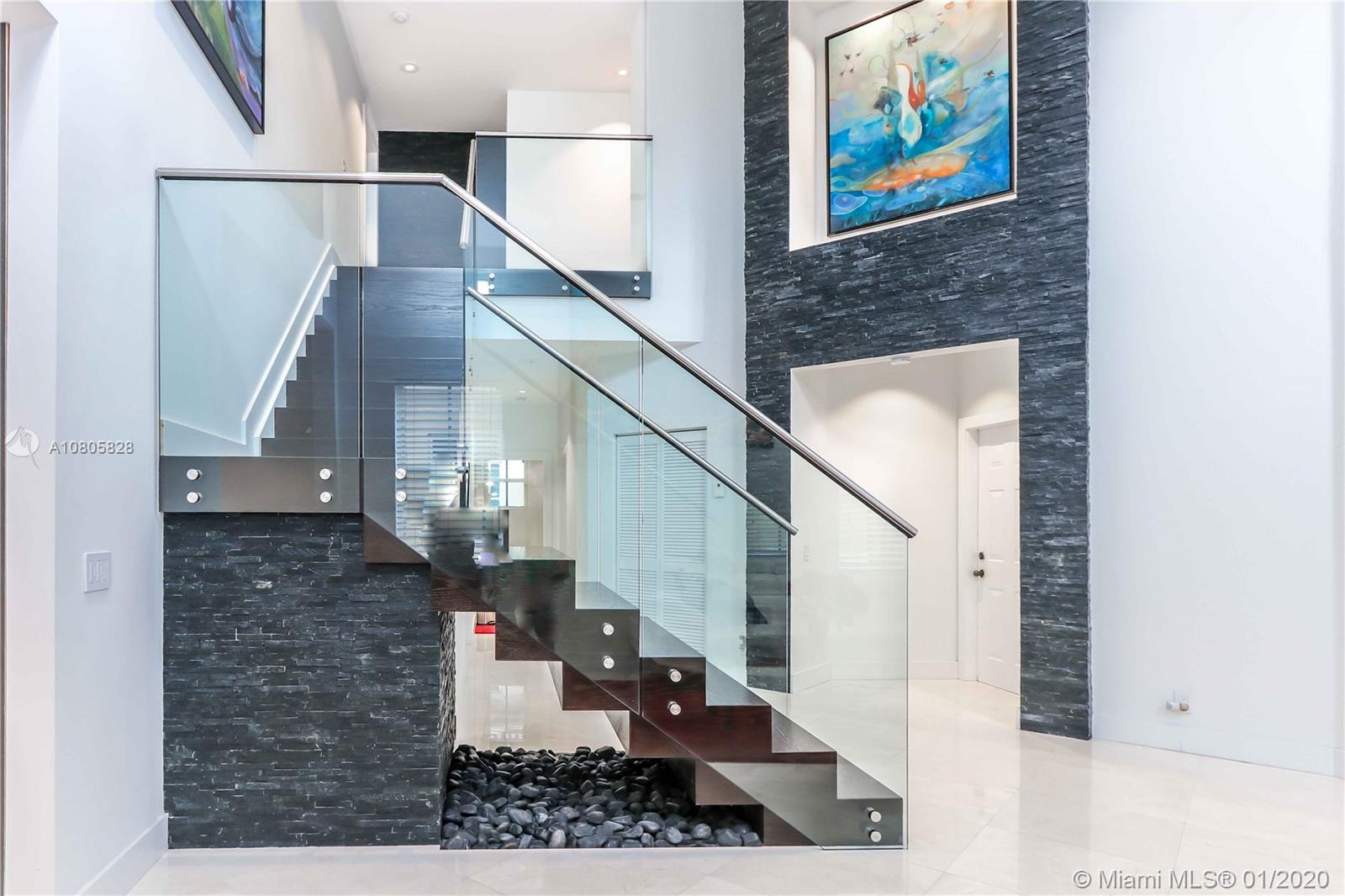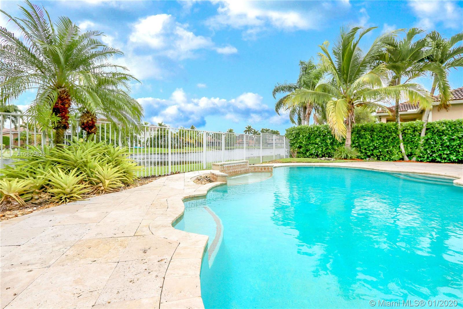A real modern waterfront pool gem in sough after gated Savanna in Weston.This spectacular, fully renovated 2-story home is the real deal with the wow factor from the moment you step into the bright living room. The double height ceiling is enhanced with the large format marble floors and the stunning free standing glass railing staircase w/dark wood steps & stainless steel finishes. The spacious modern italian kitchen w/stainless steel appliances & siltstone counter is the perfect family gathering with spacious center island & induction cooktop. All bathrooms are superb modern high-end w/clear glass shower, floating vanities & more. This luxurious dream home has the perfect floor plan with 1 full suite BR in the first floor & resort style backyard w/free form pool & infinity water views.